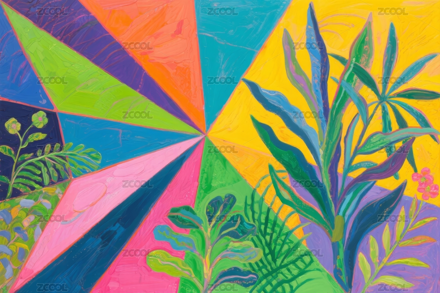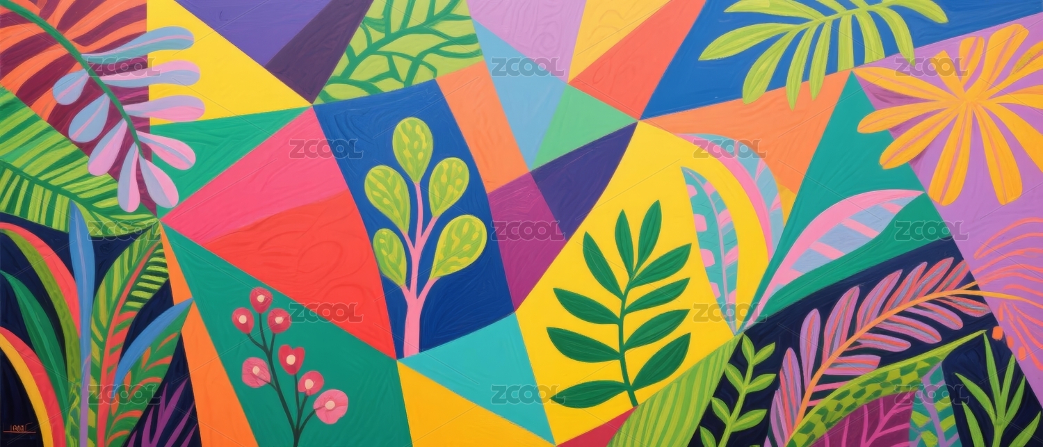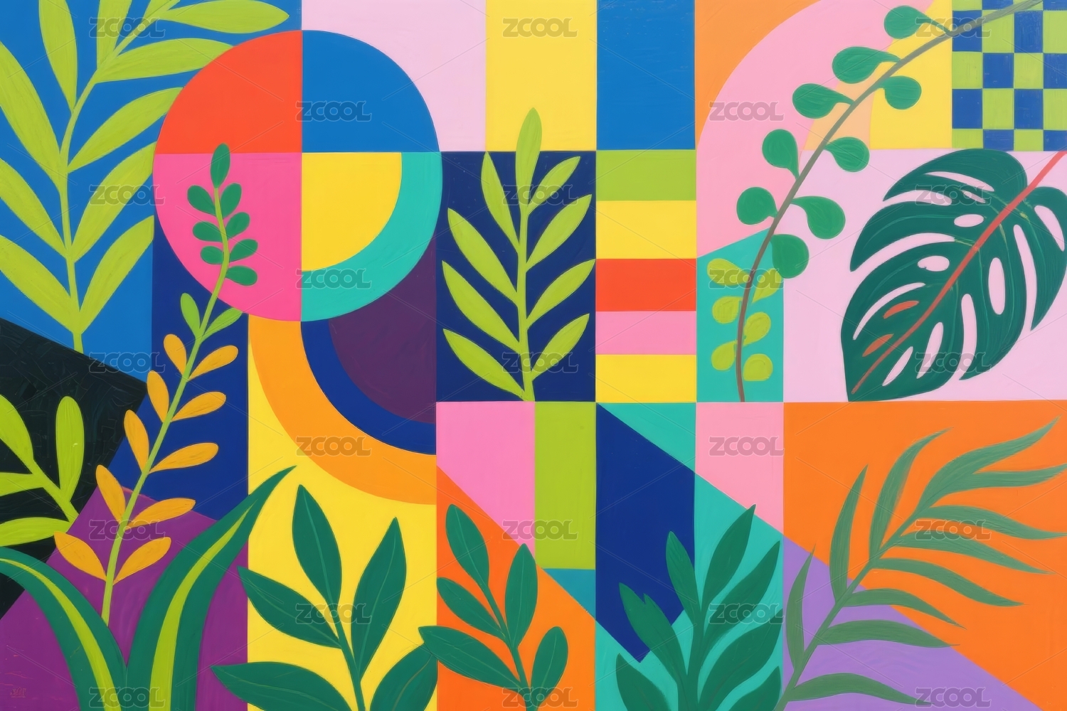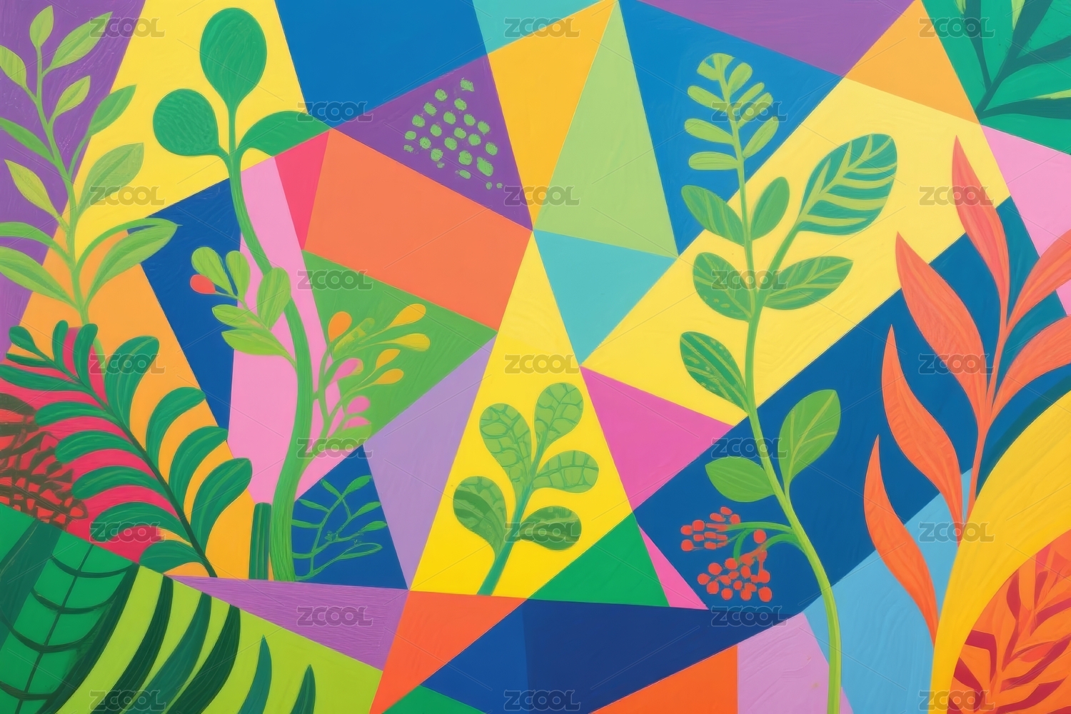 主视觉,场景,风格,创意,元素,艺术,叶片,多彩,装饰画,几何