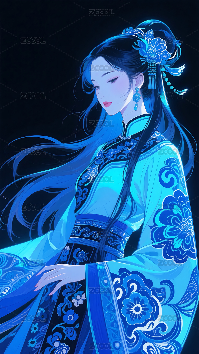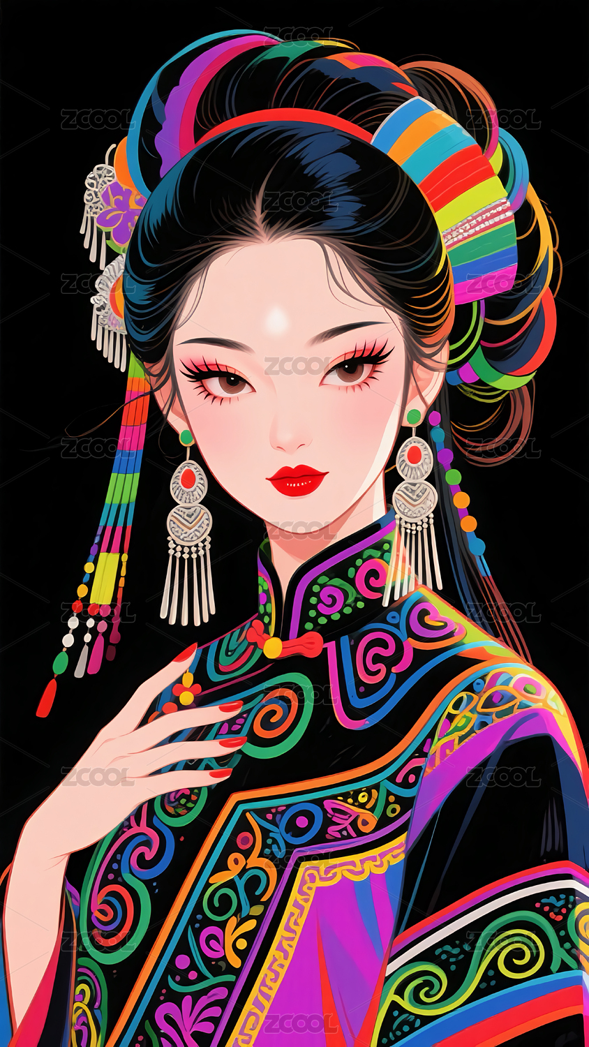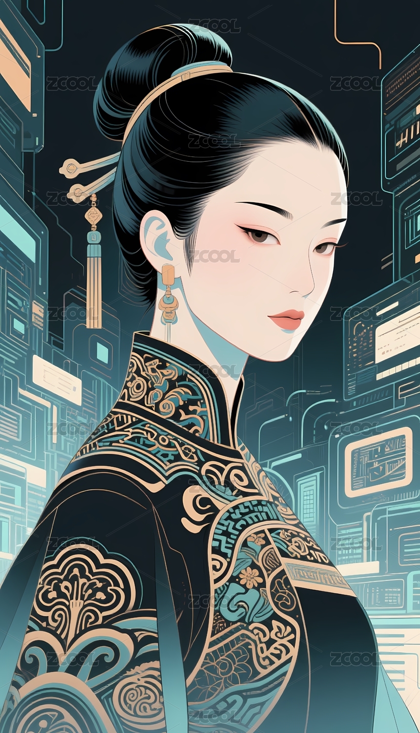 国风,插画,发饰,花钿,服饰,纹样,色彩,传统,美学,东方