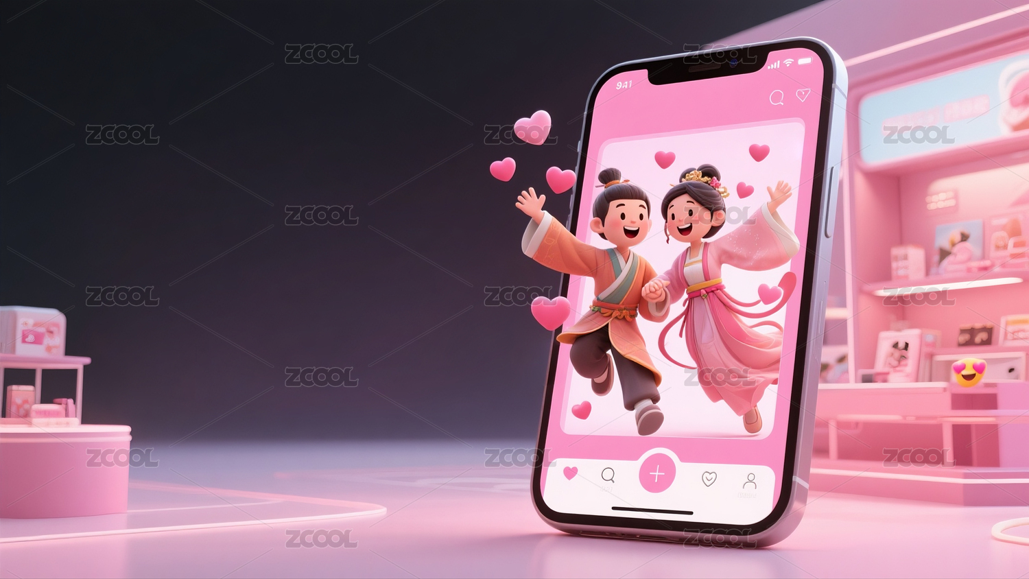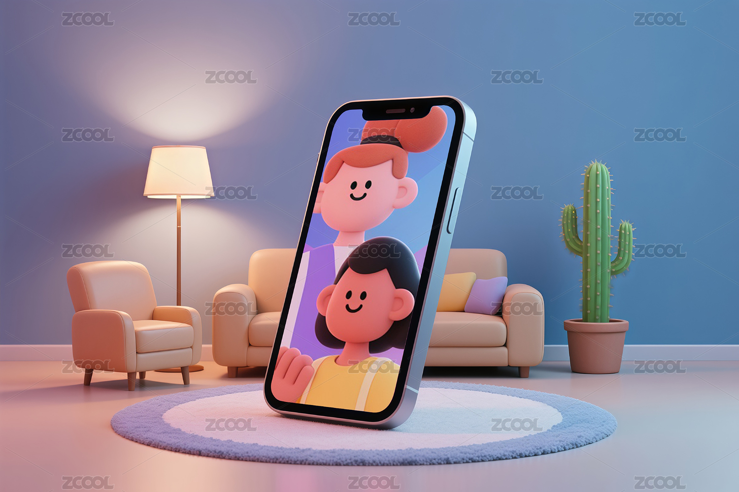手机,卡通人物,仙人掌,台灯,扶手椅,地毯,沙发,场景,客厅,3D卡通
