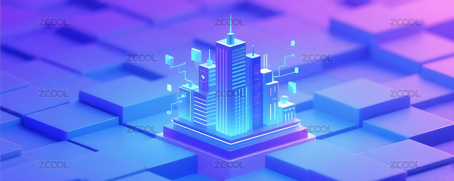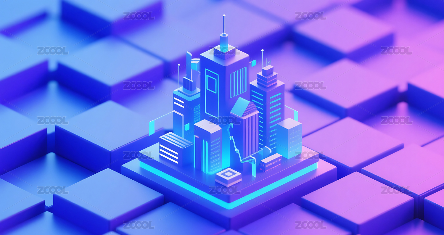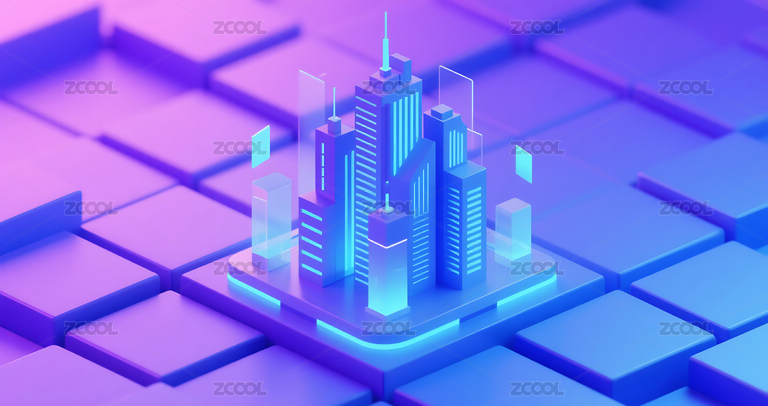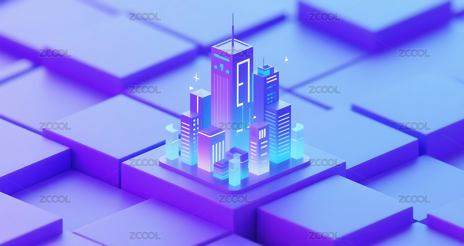 紫色,蓝色,几何,图形,3D,立体,模型,建模,城市,建筑