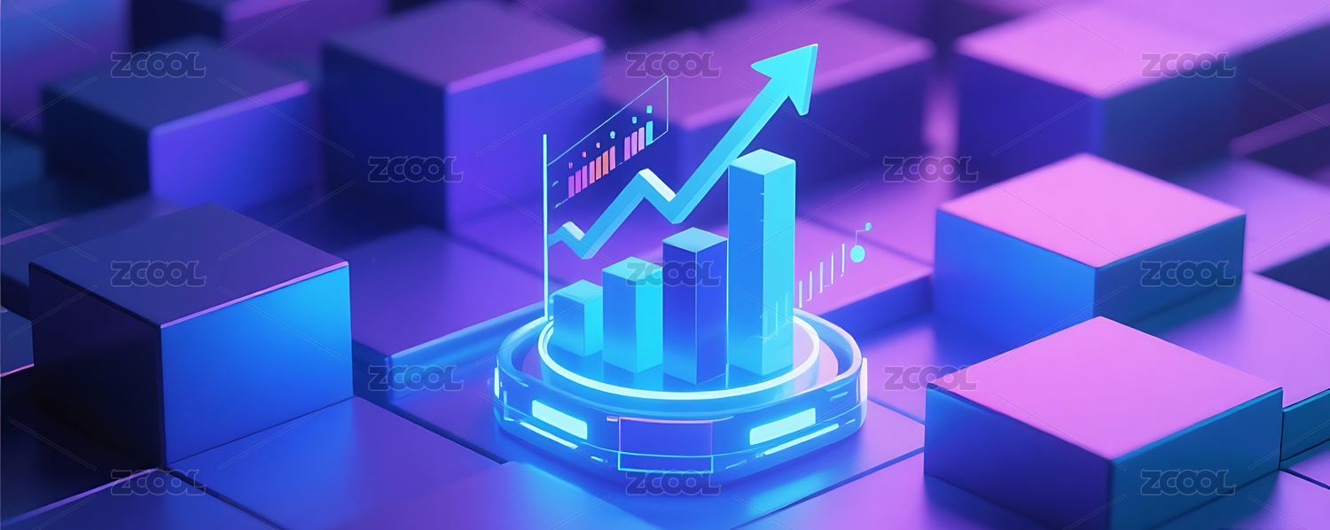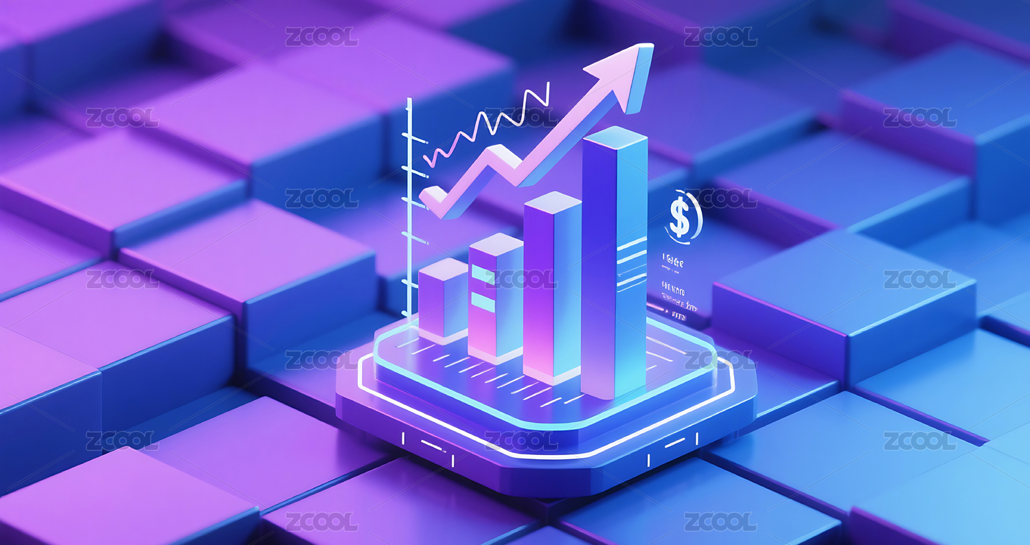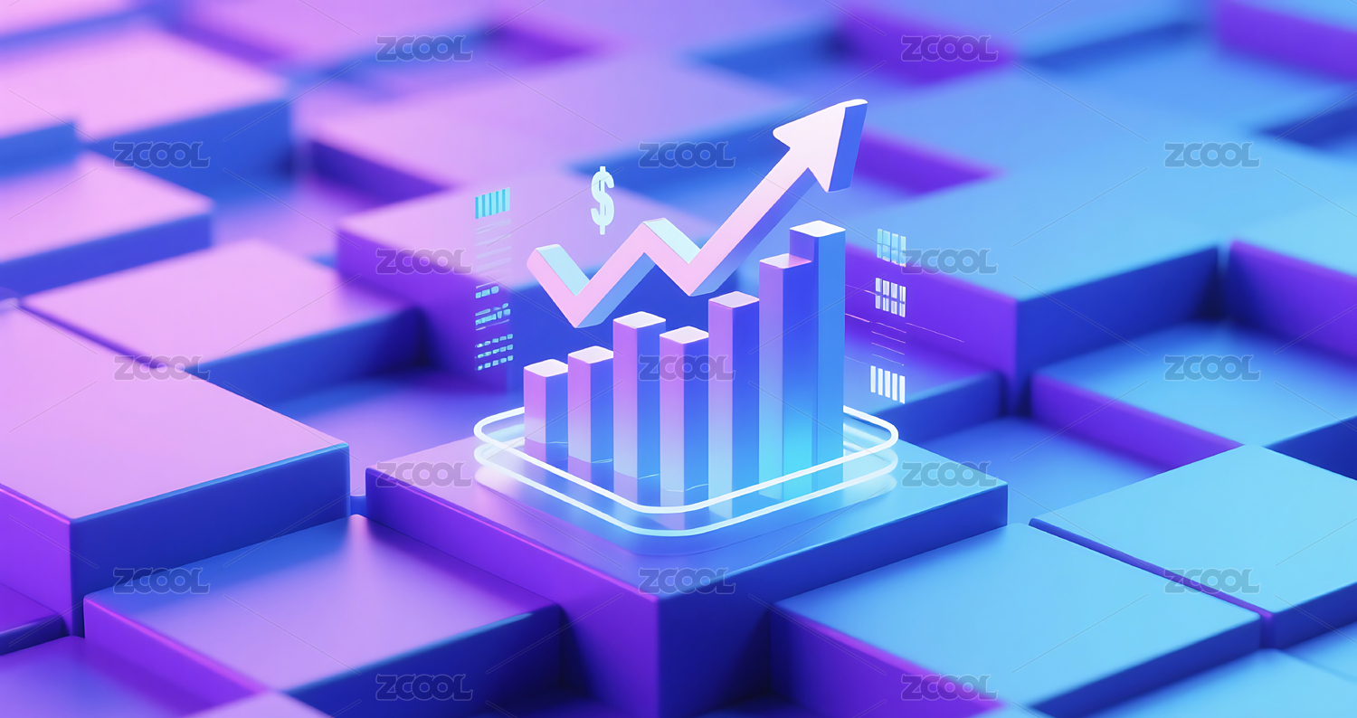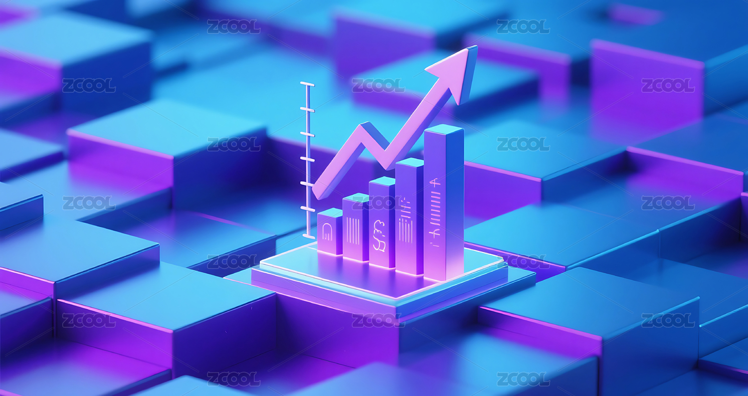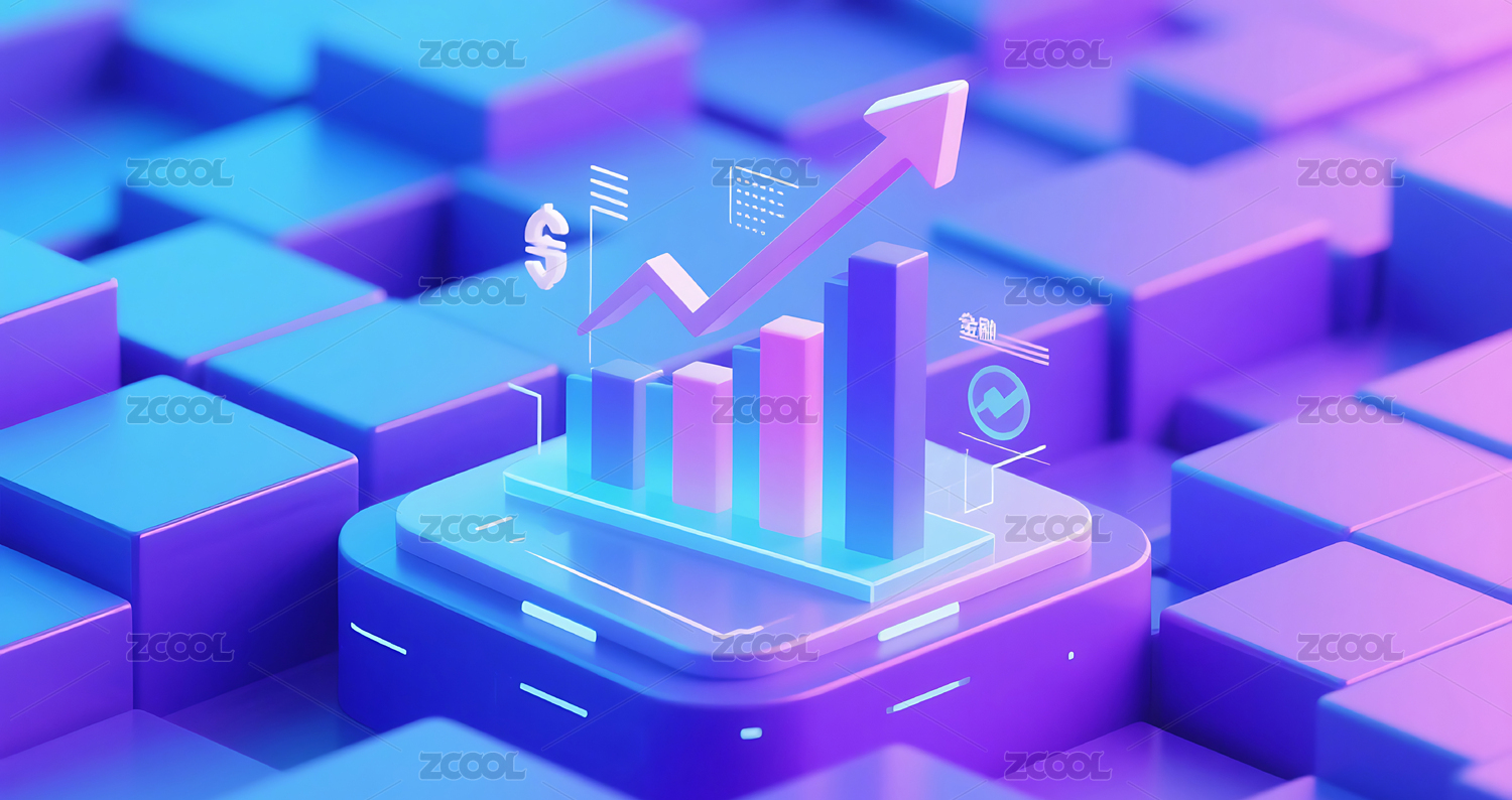 紫蓝色几何金融经济柱状图插画背景壁纸