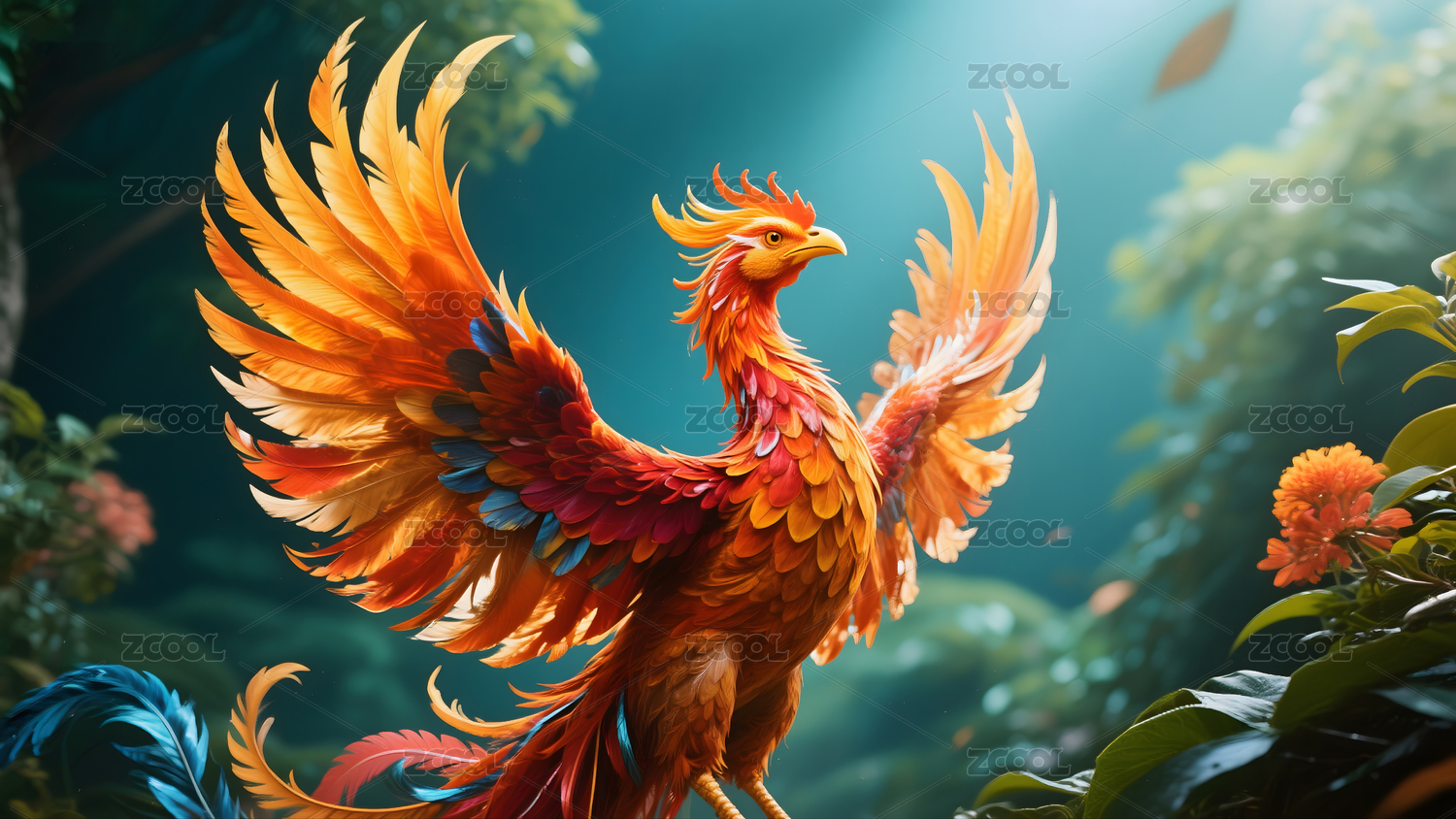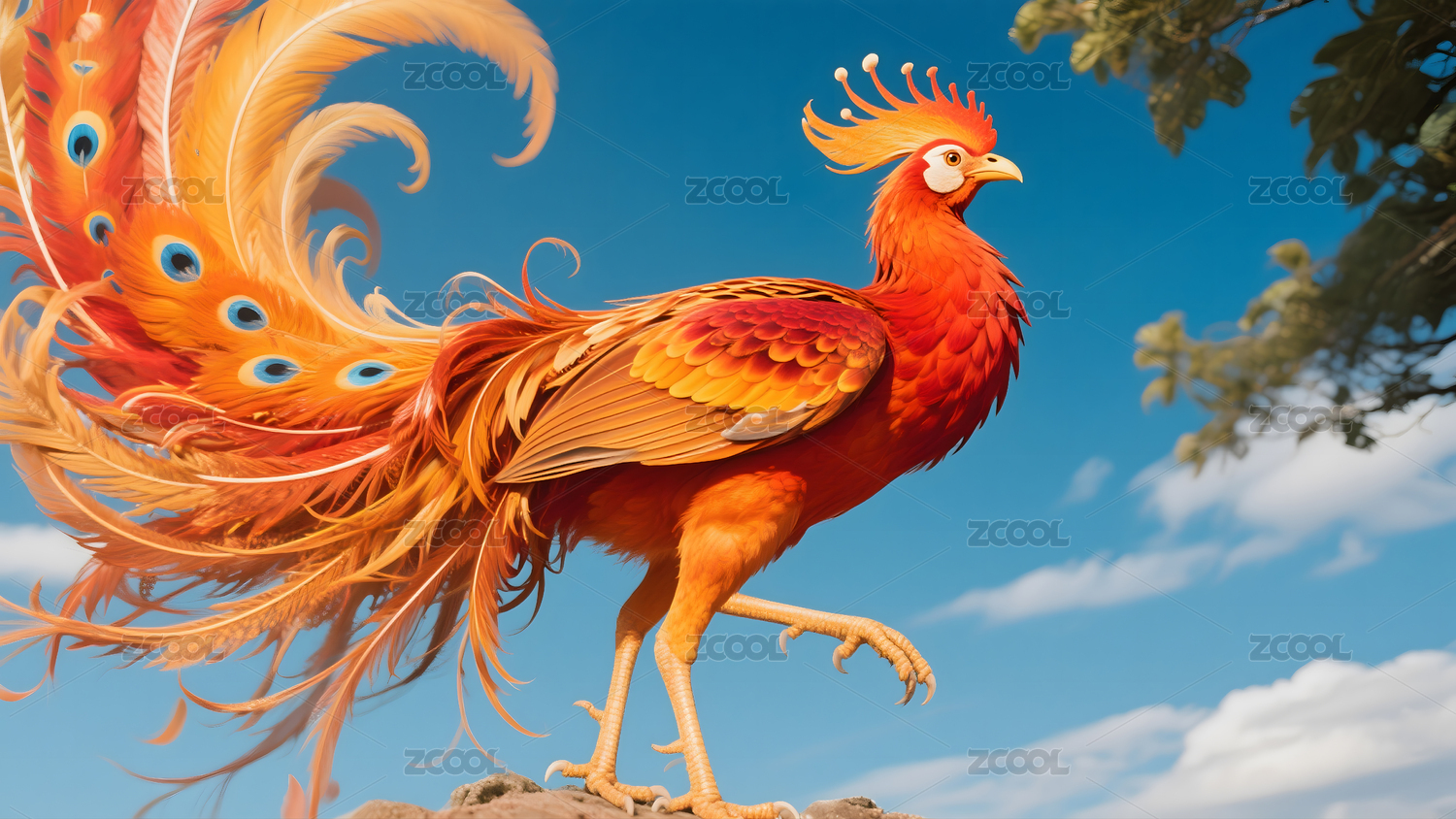 橙色,红色,蓝色,羽毛,艺术,祥瑞,传说,鸟类,吉祥,神鸟