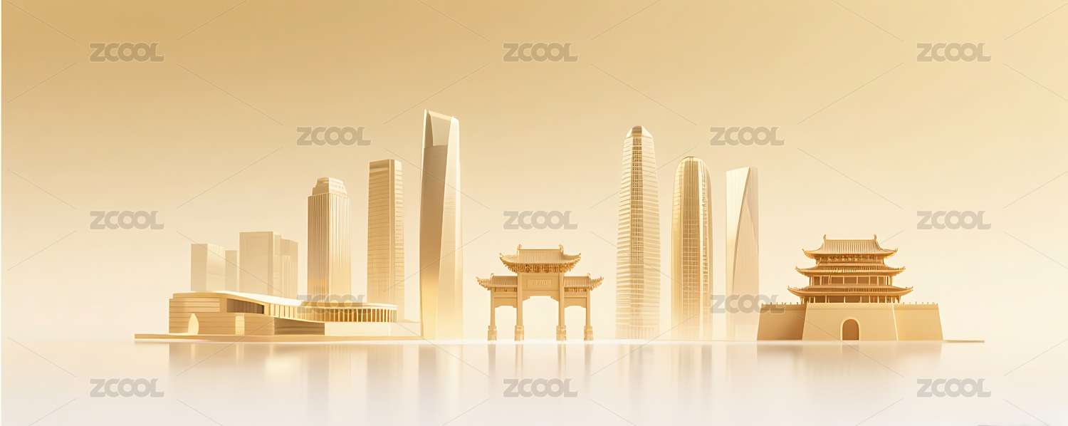金色现代城市建筑和古建筑插画背景壁纸