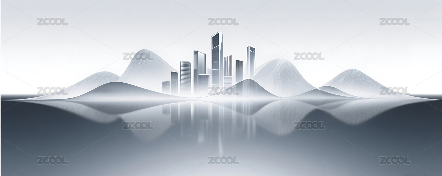 银色渐变简约半透明城市建筑山峰背景
