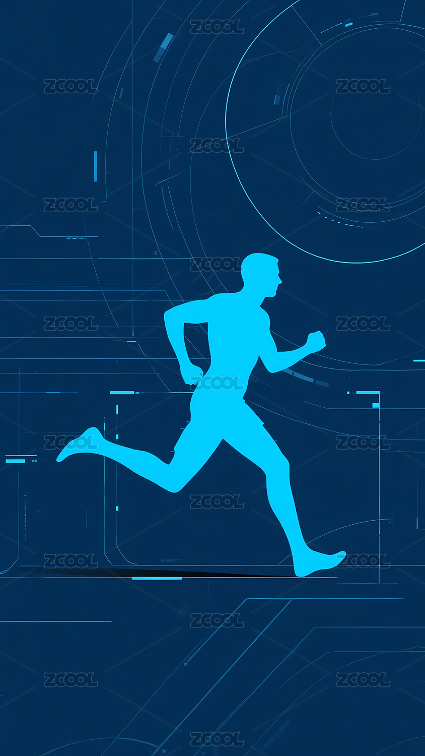 蓝色背景上的跑步剪影