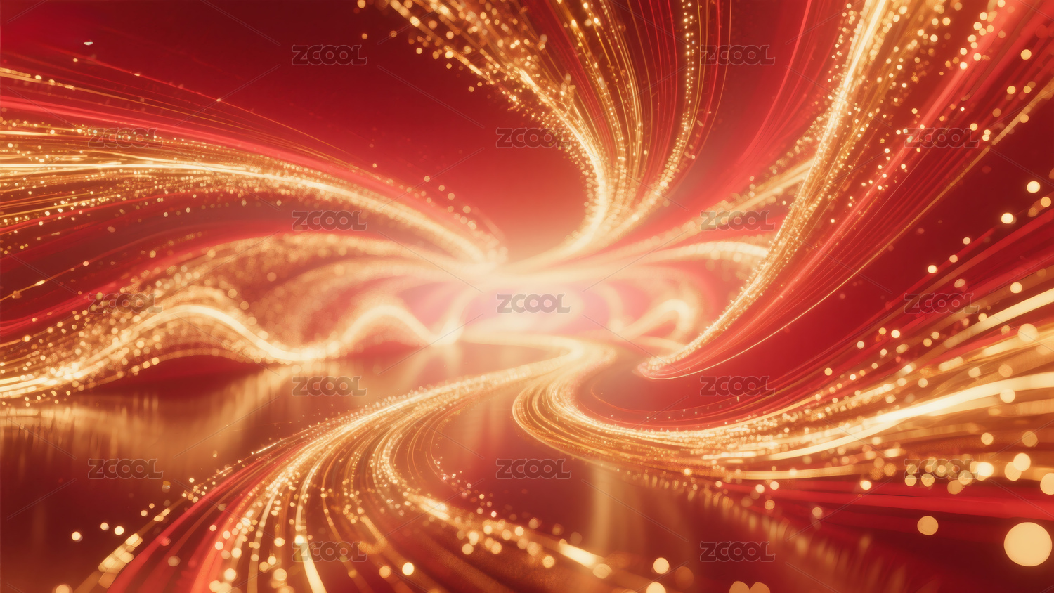 红色与金色粒子流线科技背景