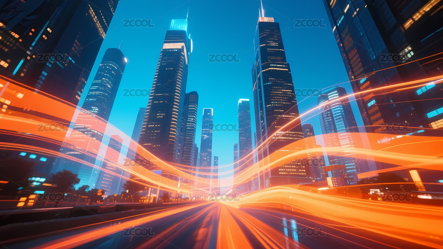 光轨高速流动夜晚未来城市