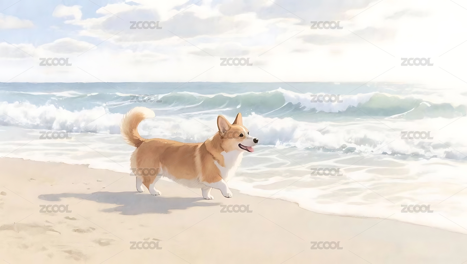 海边漫步的柯基