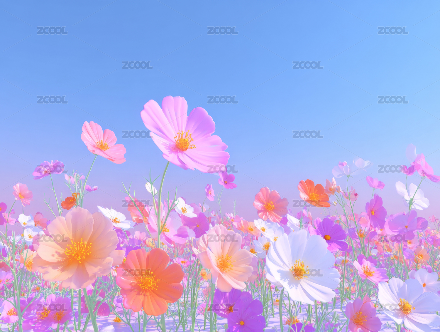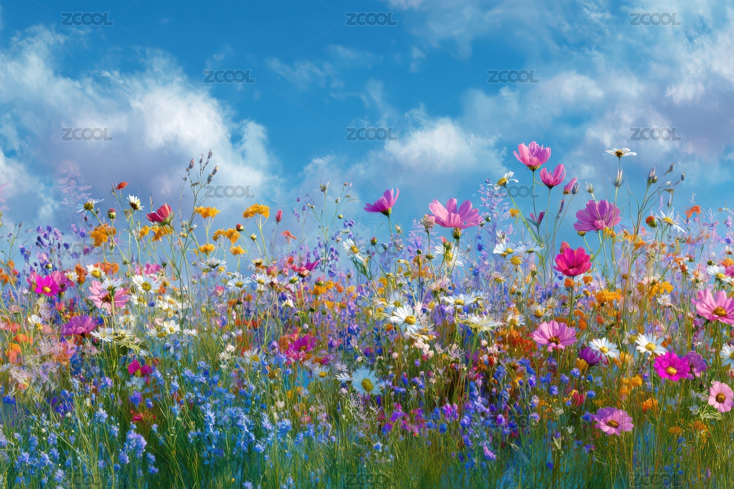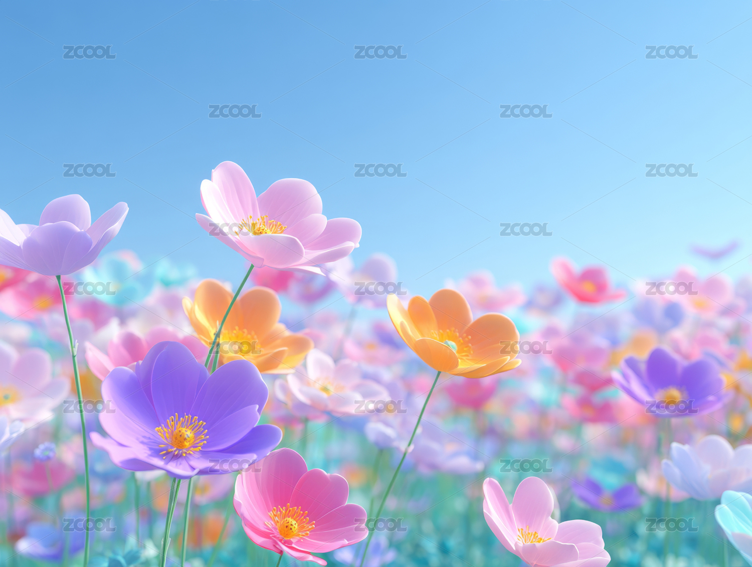 花朵,春天,蓝天,粉色,黄色,紫色,自然,户外,美丽,野花