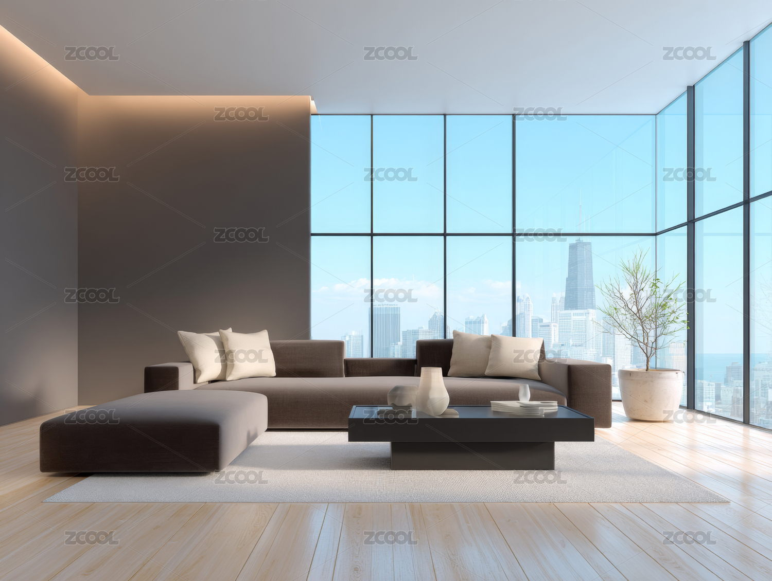 客厅,现代,海景,大窗,沙发,装饰灯,绿植,地毯,木地板,高层
