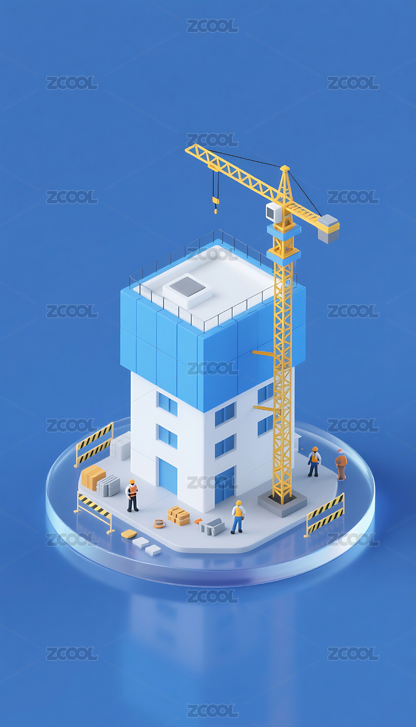 3D,智慧城市,城市,建筑,模型,立体,塔吊,工人,建模,建造