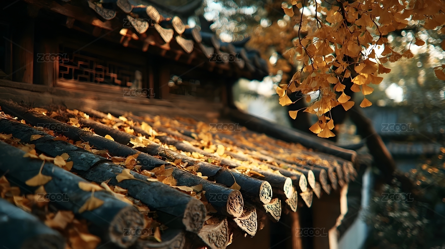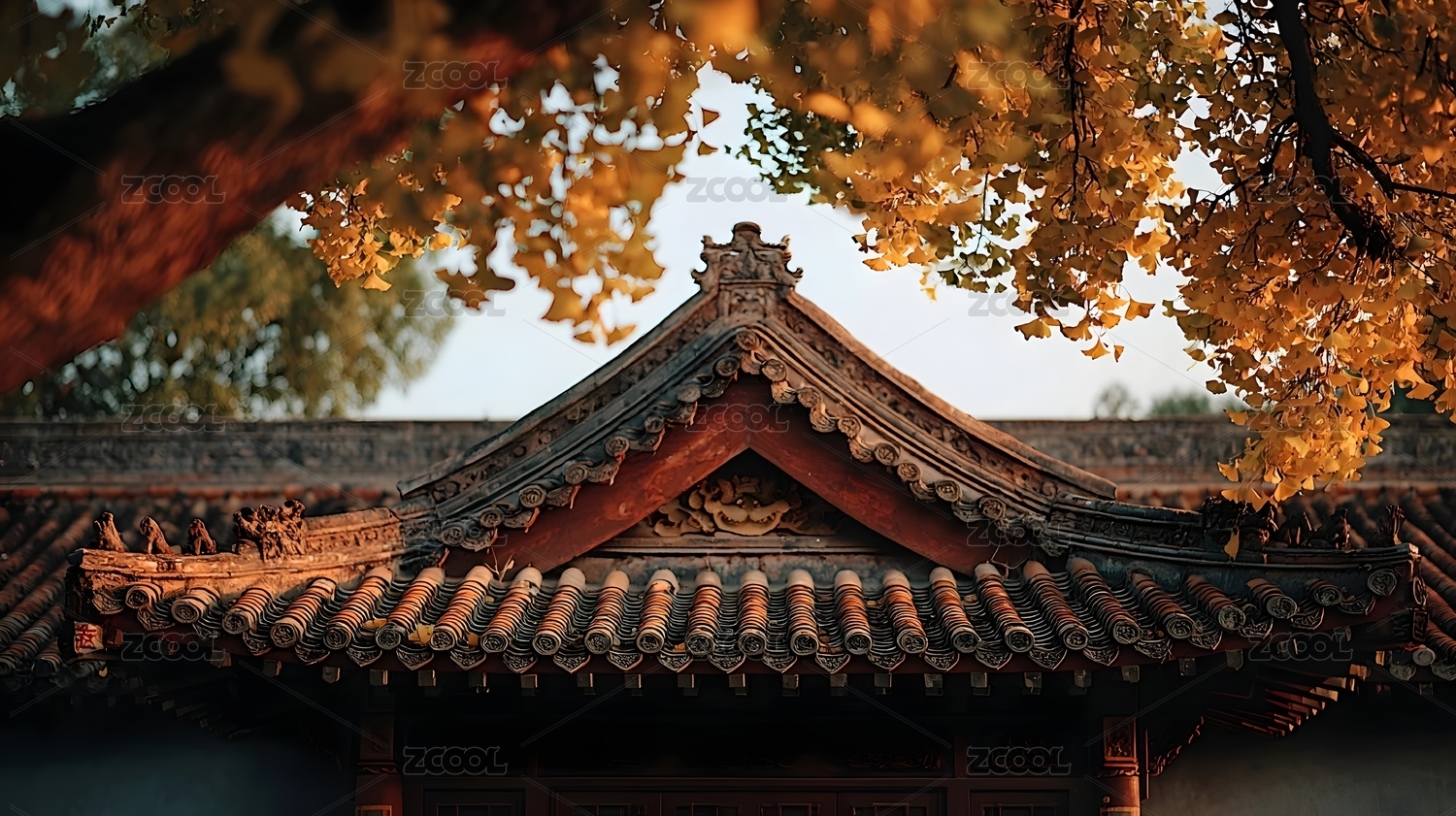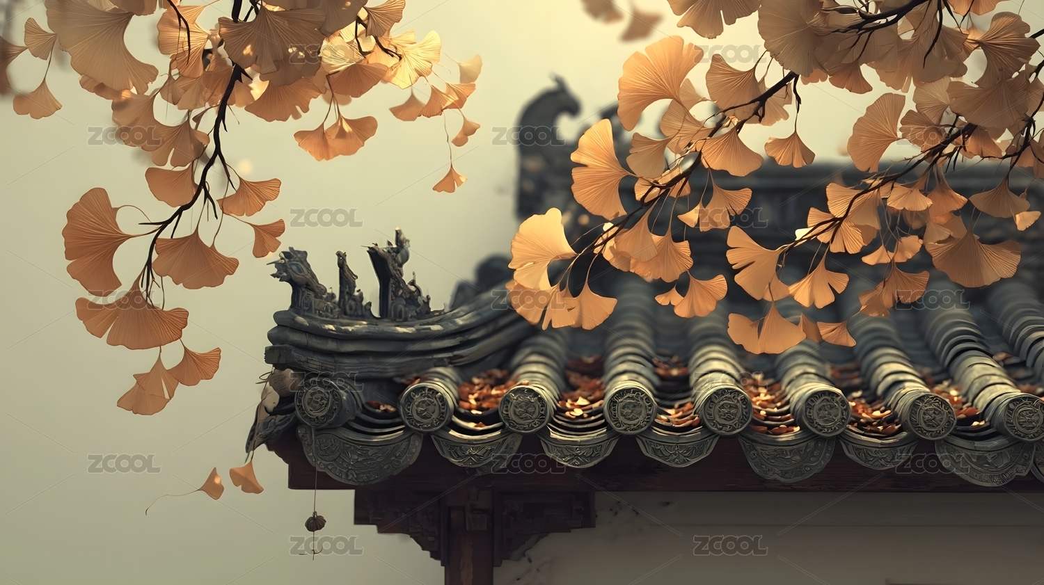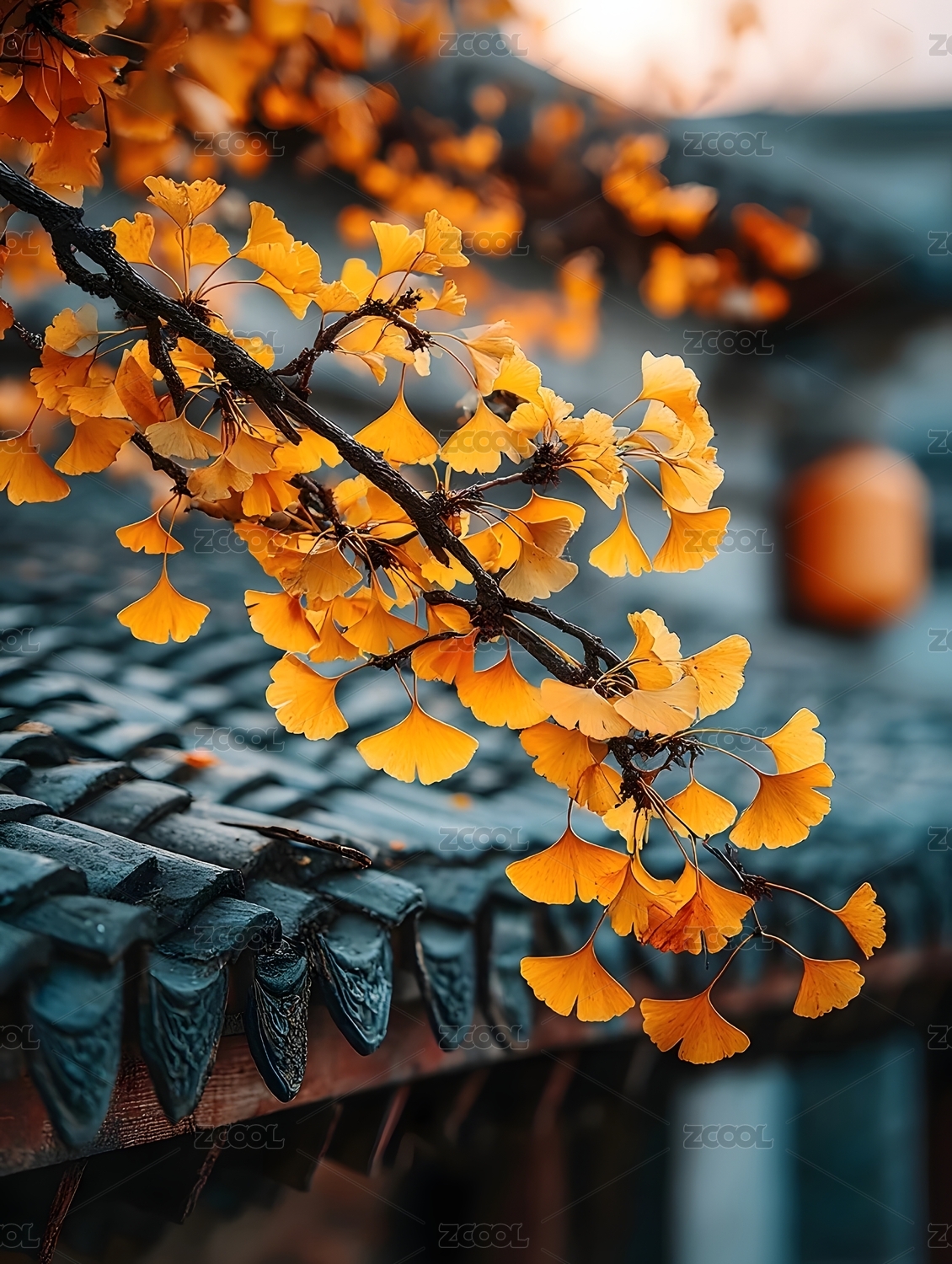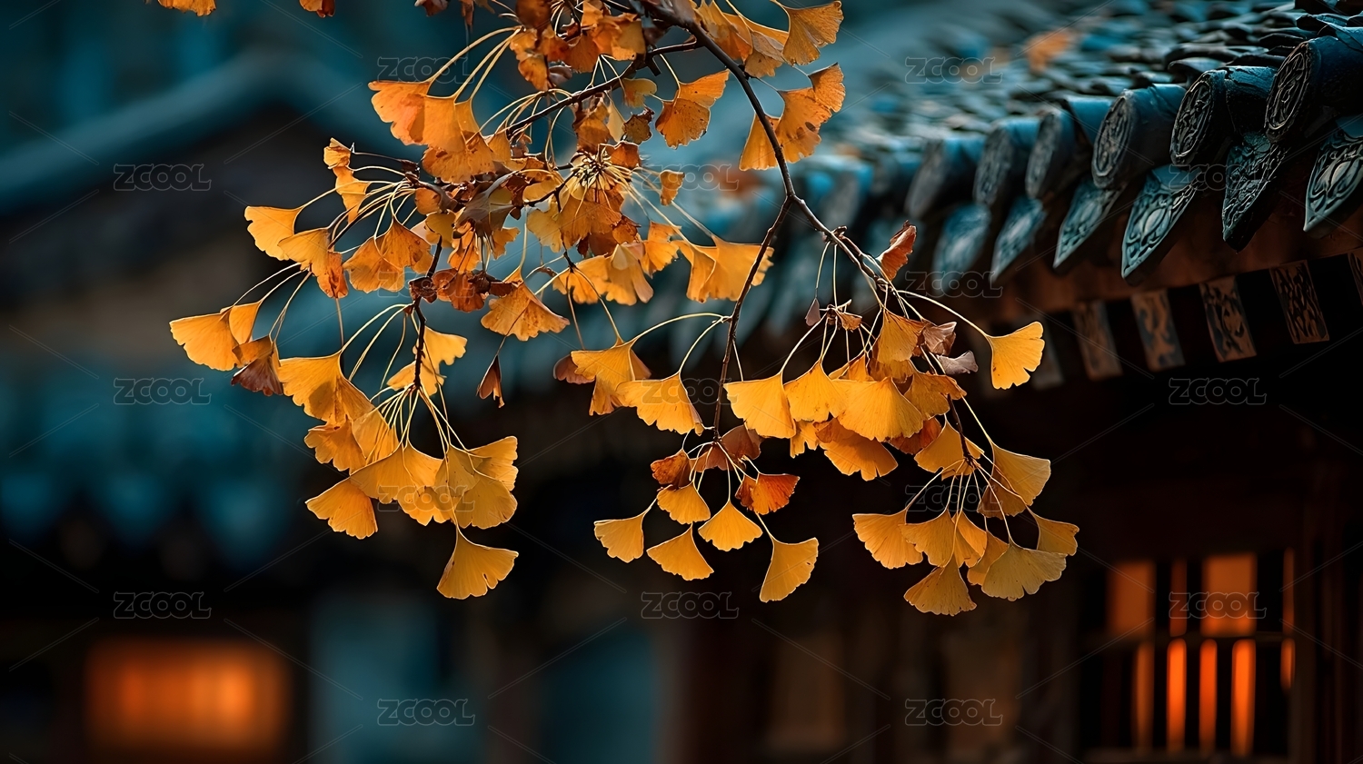 装饰,工艺,细节,枝条,金色,建筑,树木,银杏,屋顶,黄叶