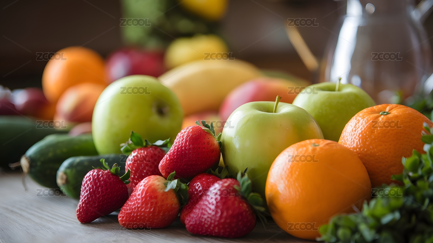 新鲜多样的水果与蔬菜组合