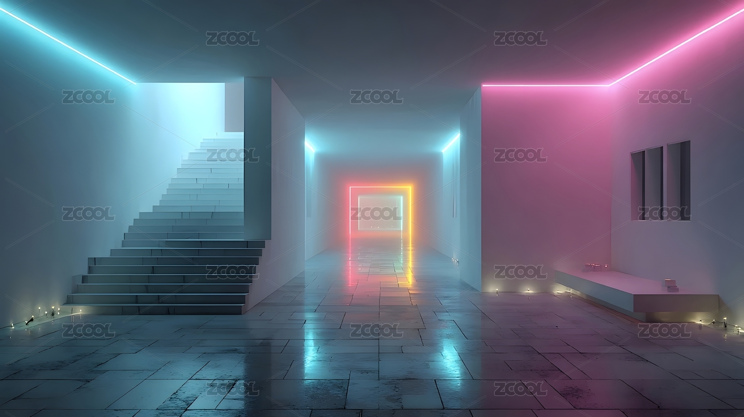 装饰,色彩,蓝色,未来,科技,几何,形状,地面,灯光,通道