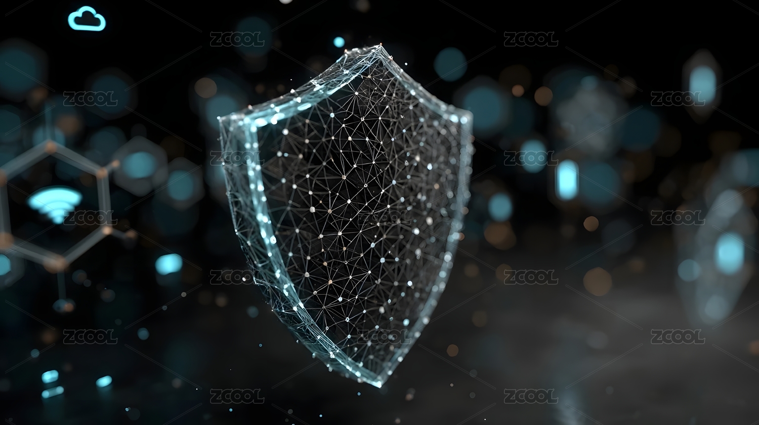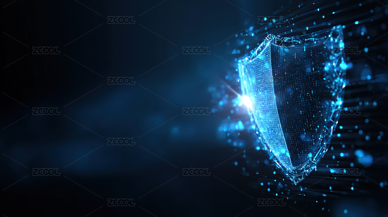 蓝色的科技盾牌,互联网金融财产安全插画保
