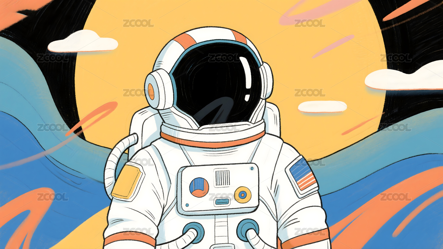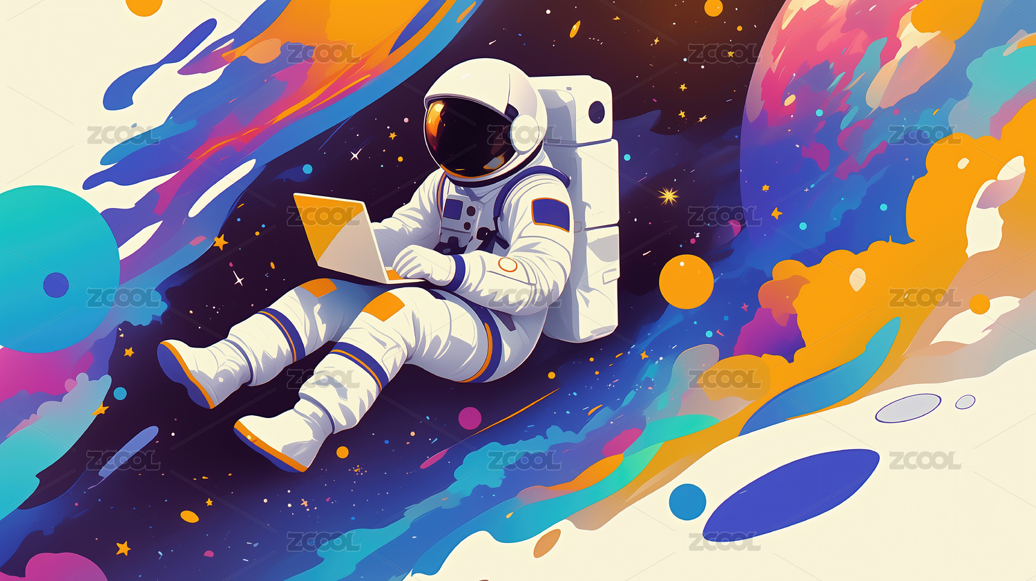 宇航员漂浮在梦幻蓝色星际卡通插画海报