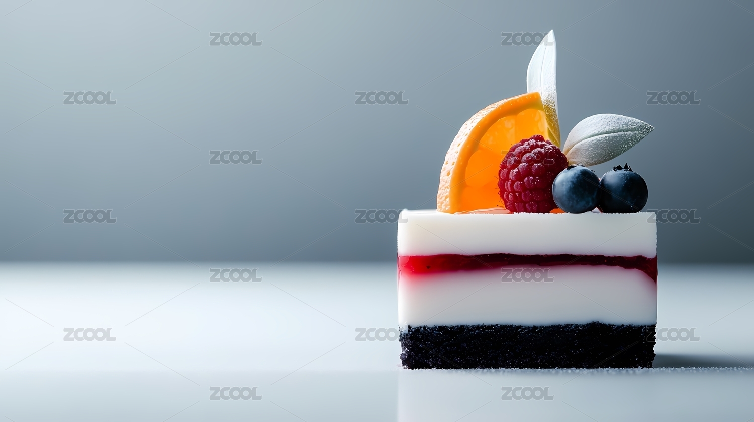 美味浆果装饰的精致蛋糕