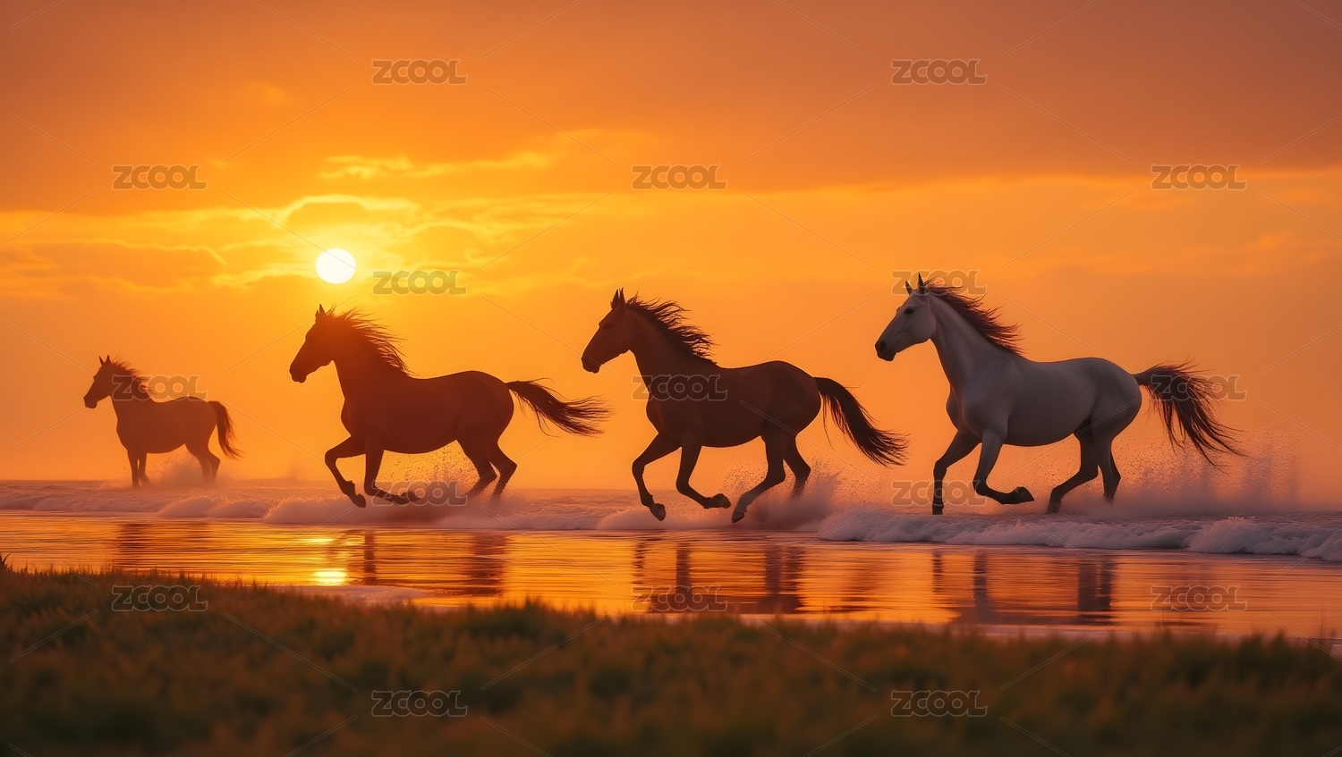 奔腾的骏马与落日