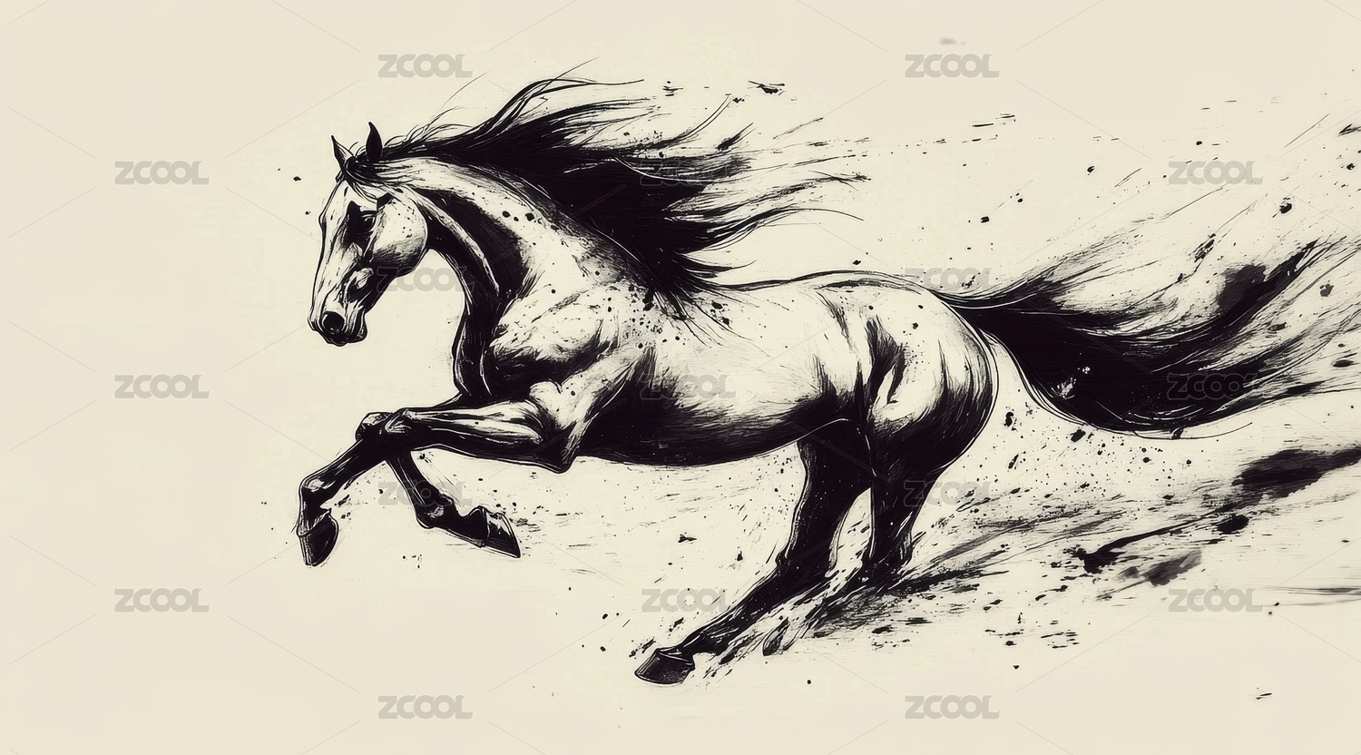 黑色,奔跑,剪影,插画,动物,元素,主题,动态,骏马,轮廓