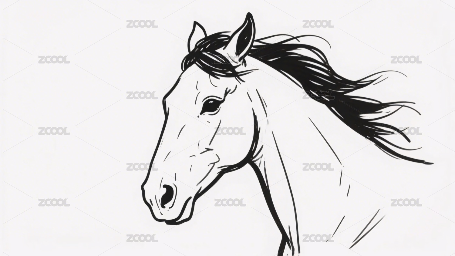 黑白线条勾勒的马头插画
