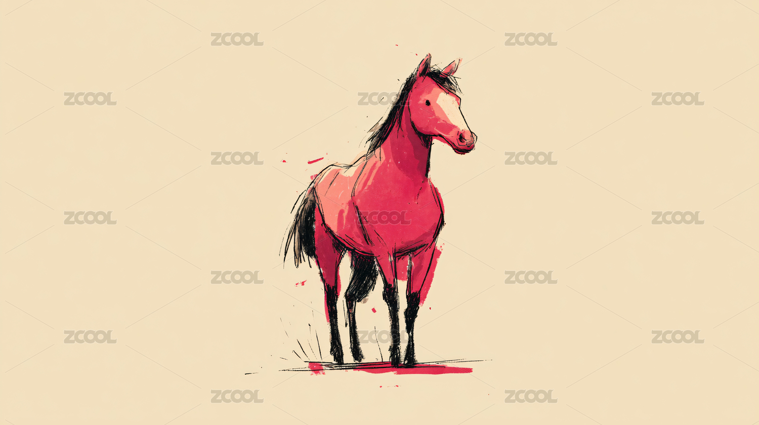 简笔风格站立小马插画