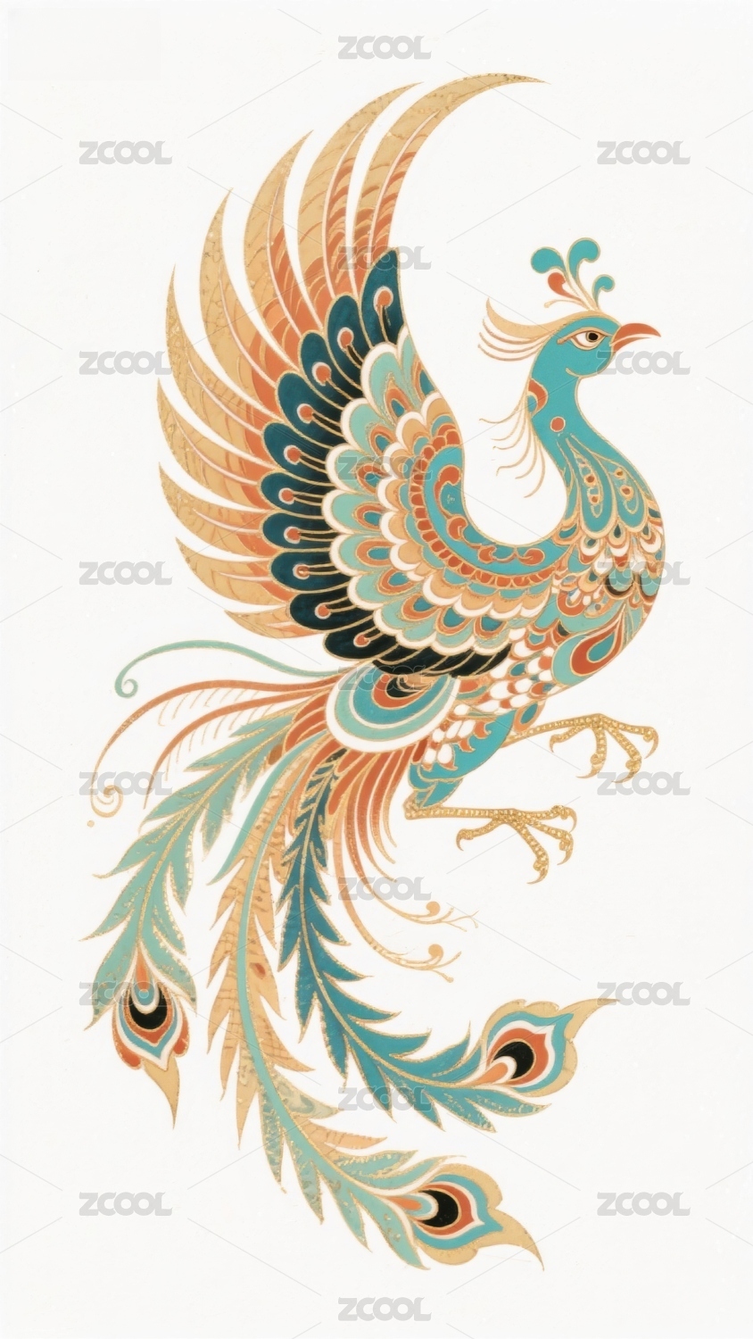 凤凰,花卉,中式,插画,图案,传统,元素,古风,装饰,纹样