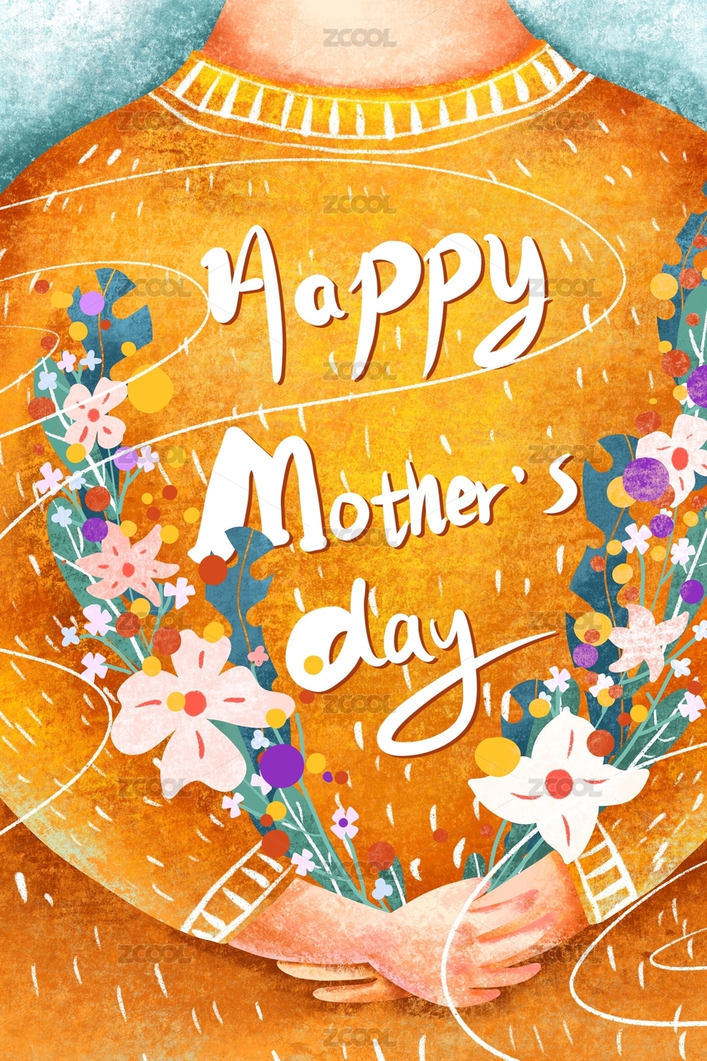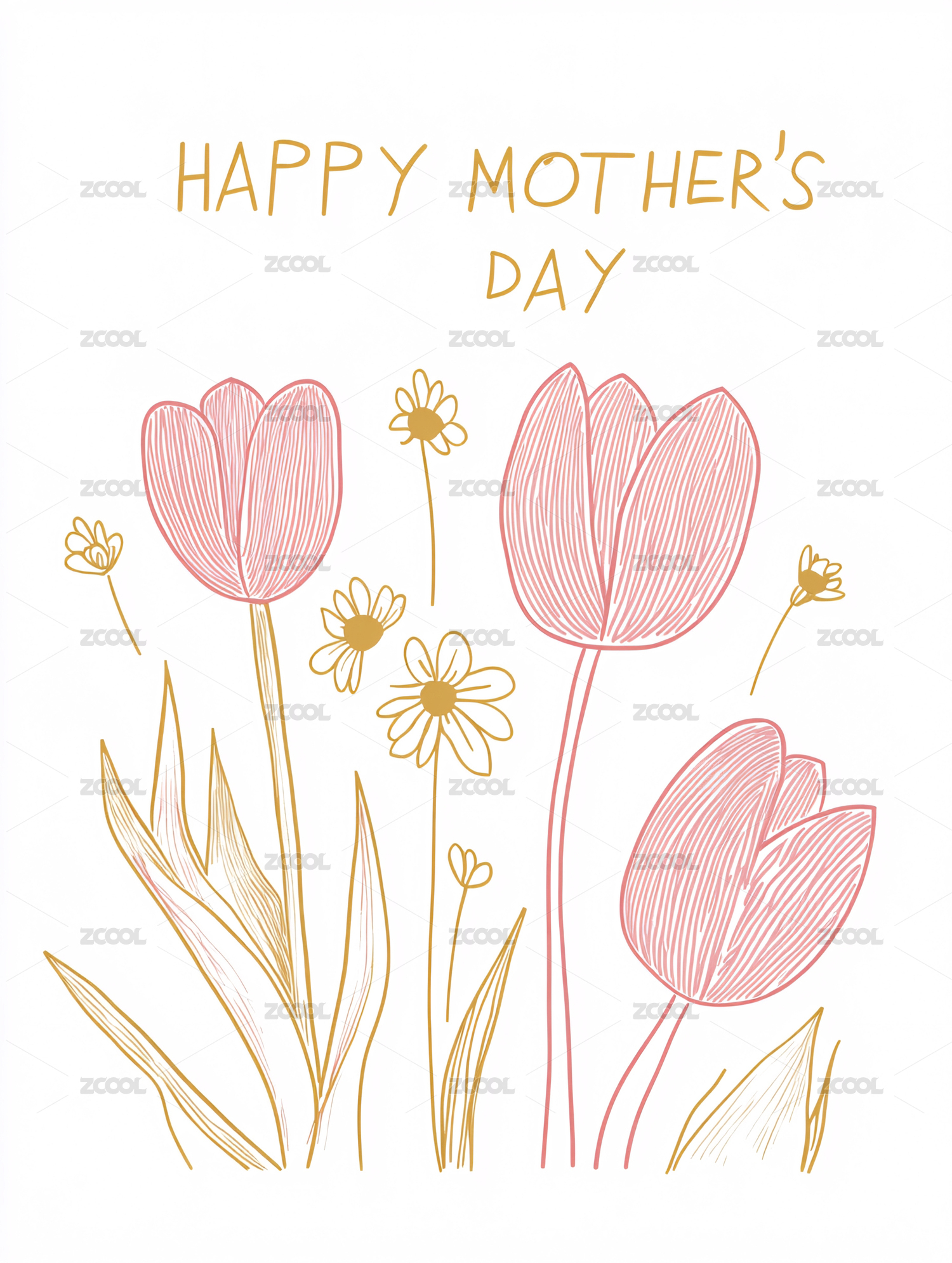 母亲节,花卉,插画,花朵,叶子,装饰,节日,祝福,文艺,清新