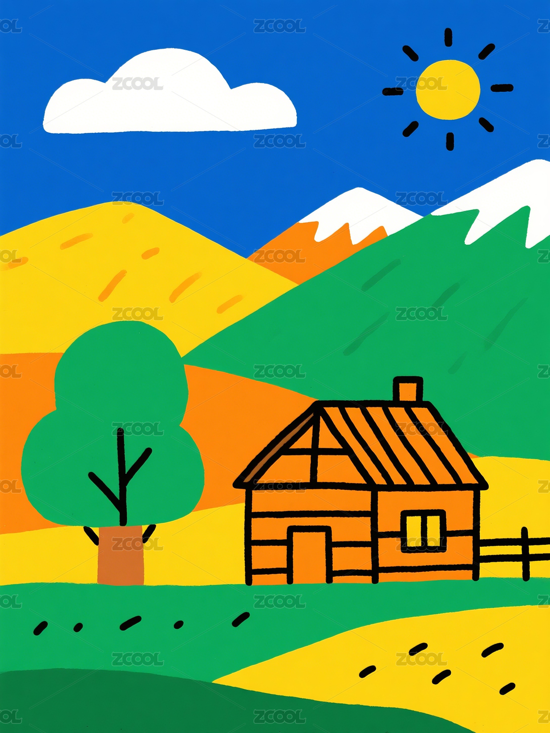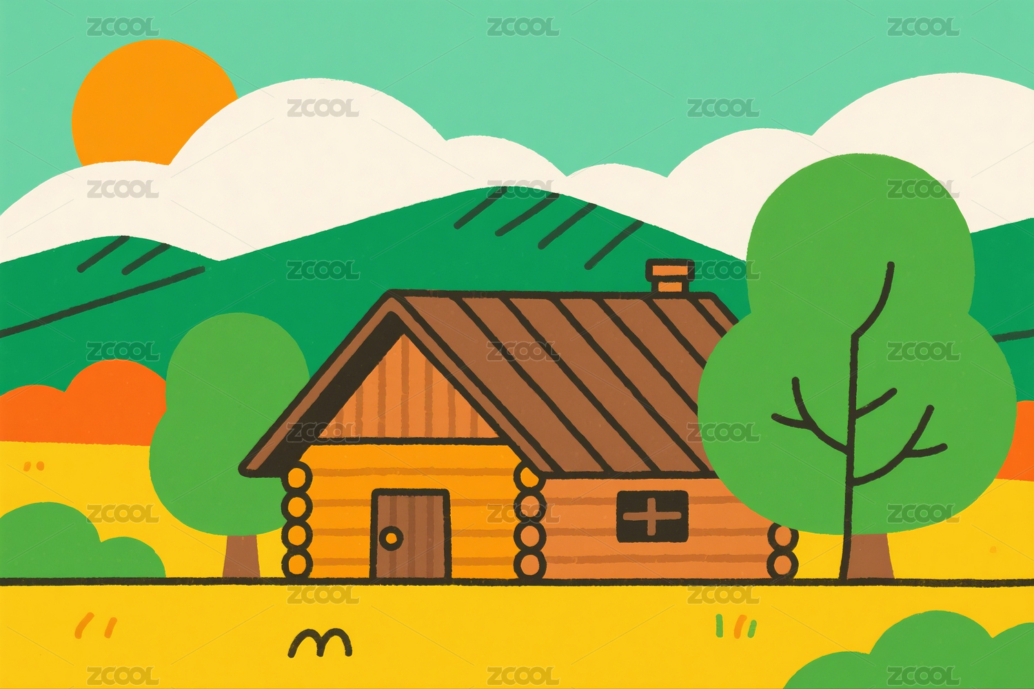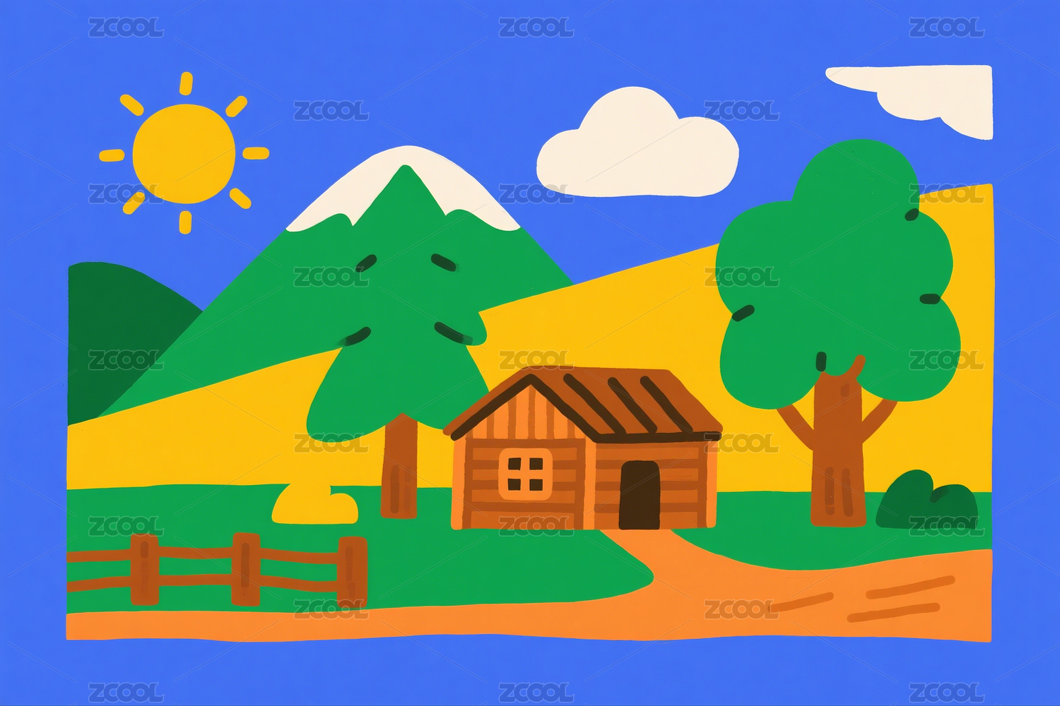 乡村,田野,绿色,树,小木屋,自然,风景,田园,建筑,环境