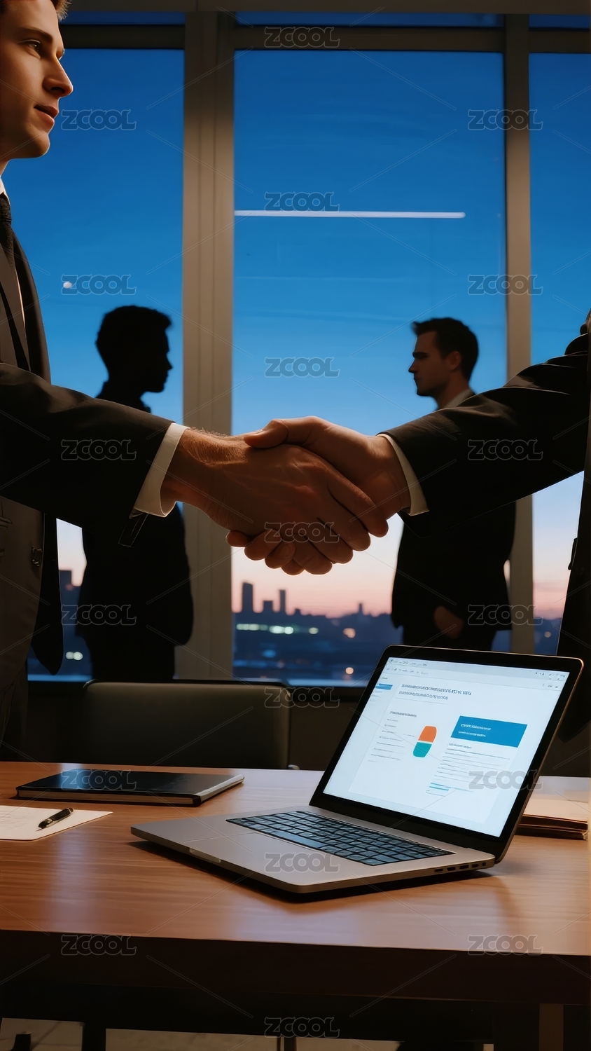 商务人士握手,背景为城市夜景