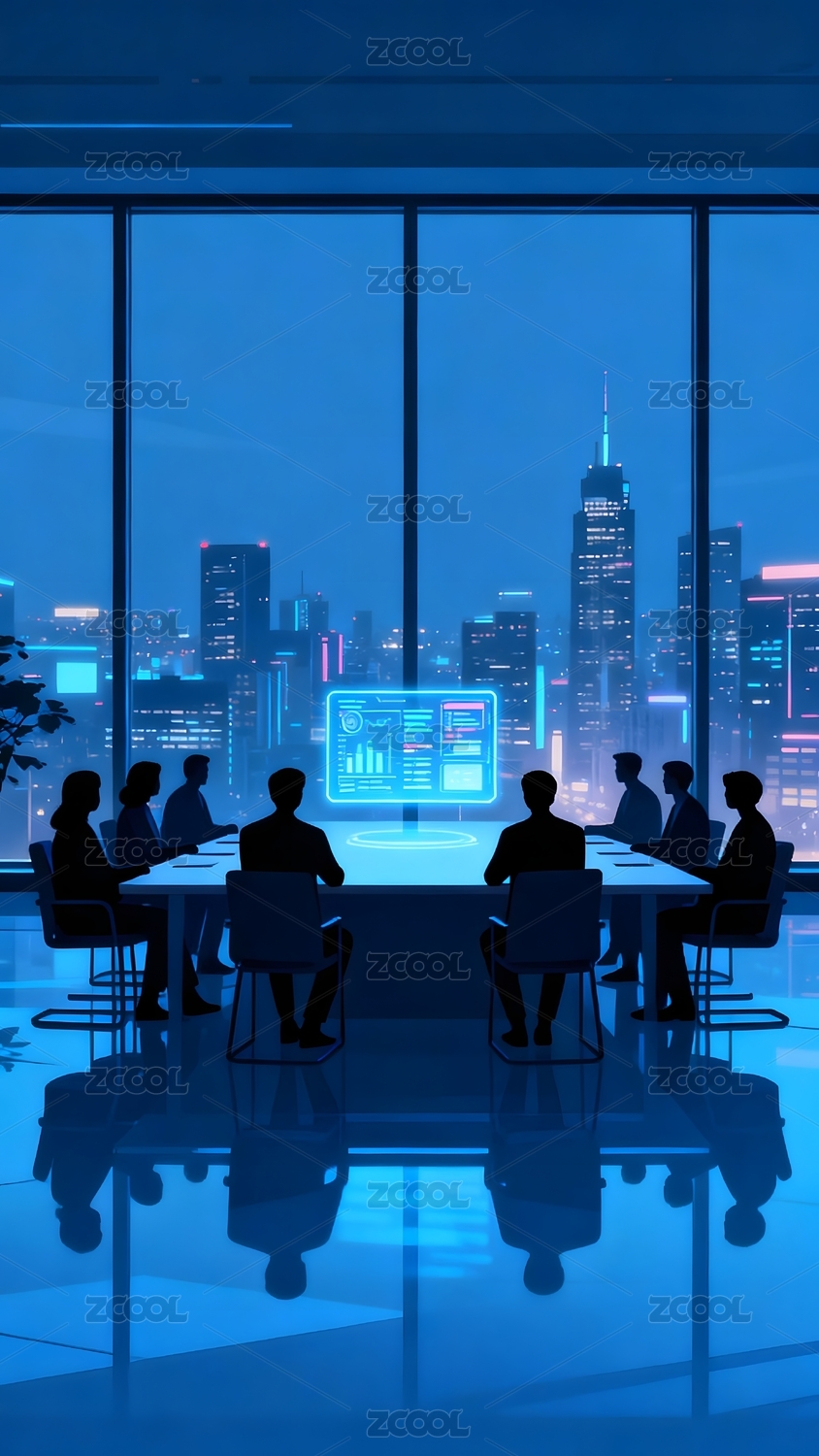 会议室内的剪影讨论