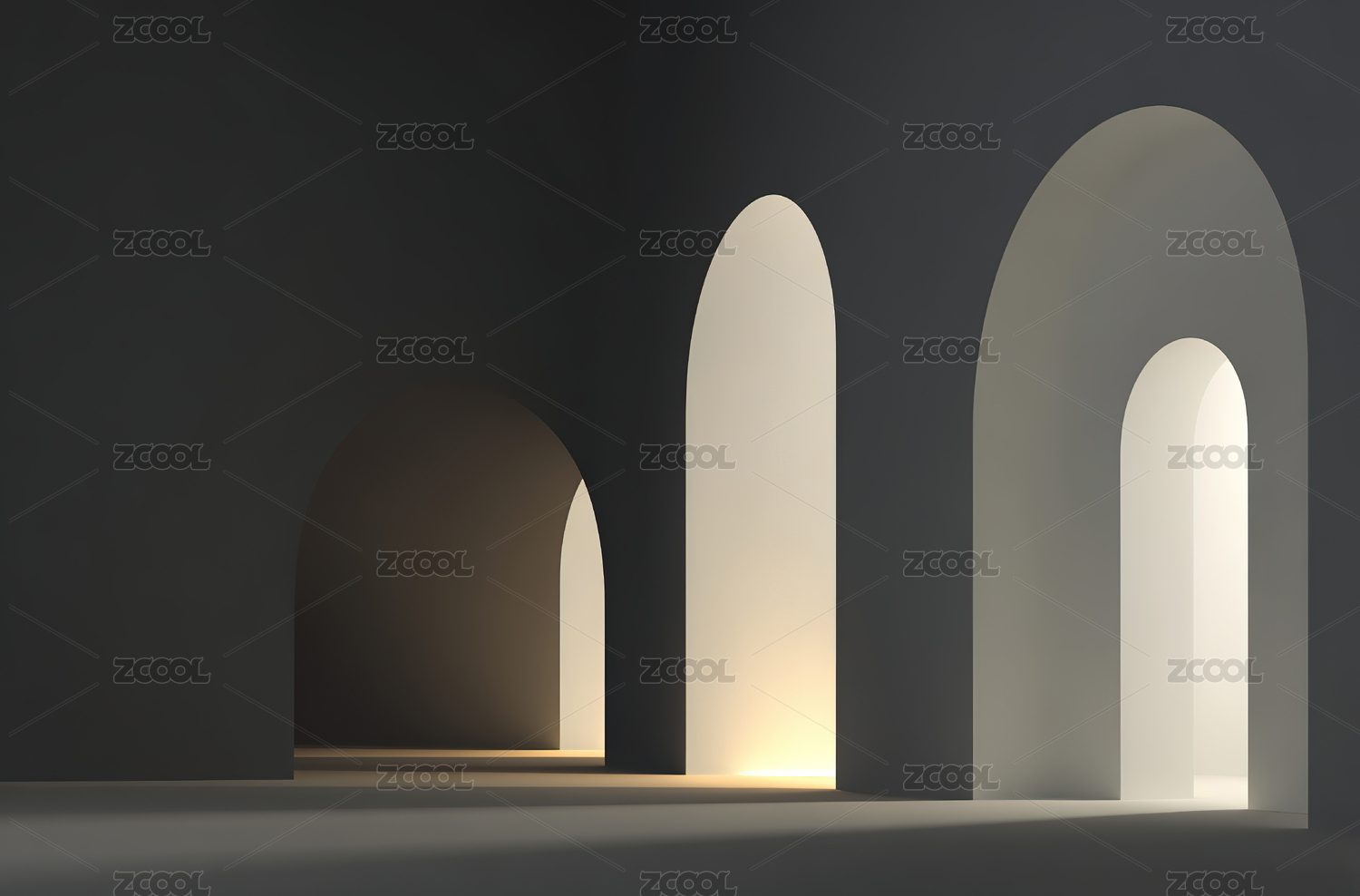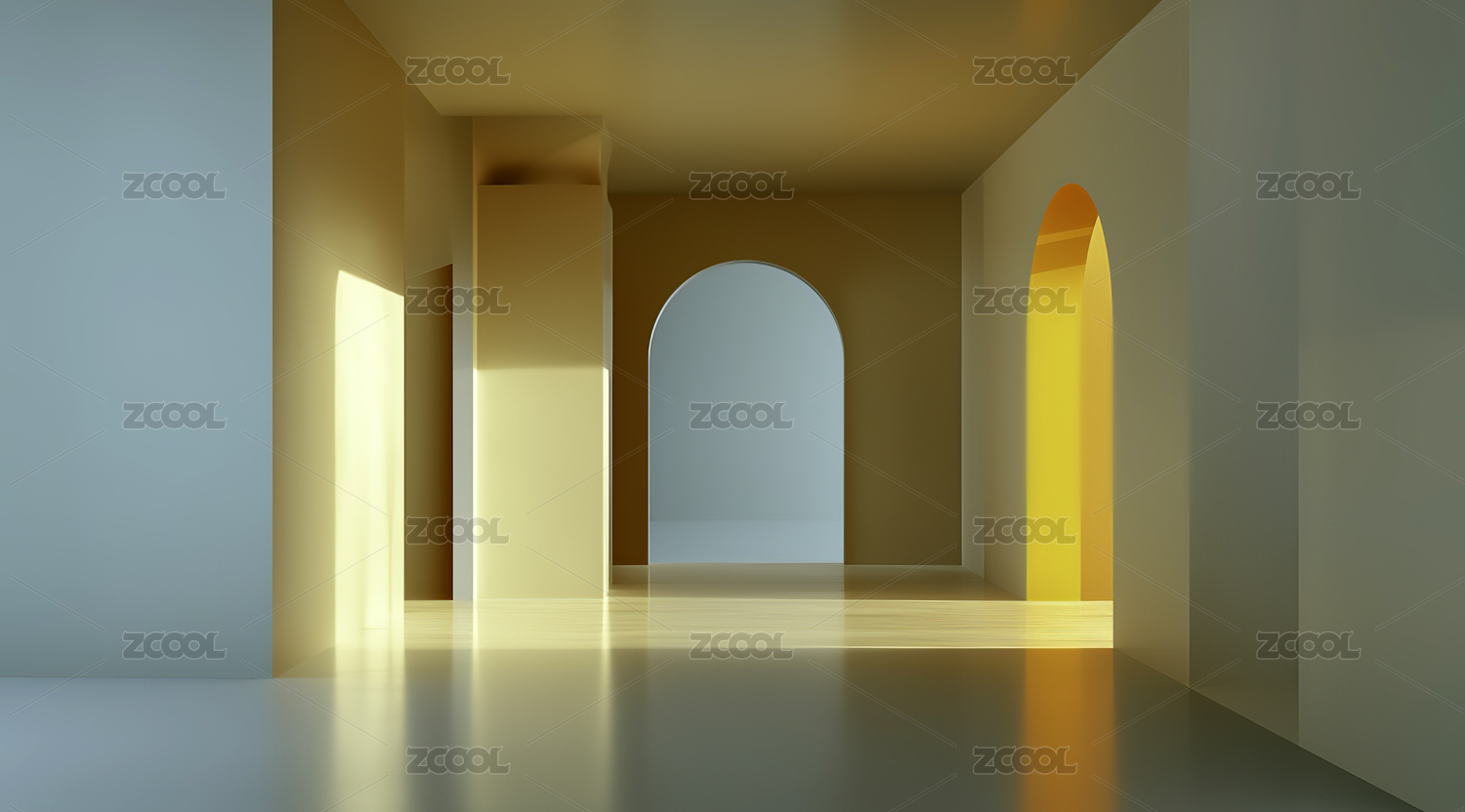 拱门,金色,室内,现代,墙面,橄榄绿,光线,侧面,阴影,图案