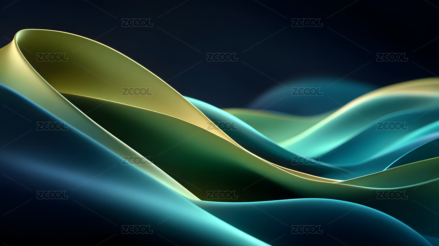 抽象流动感曲线,柔和光影,蓝色与金色交织