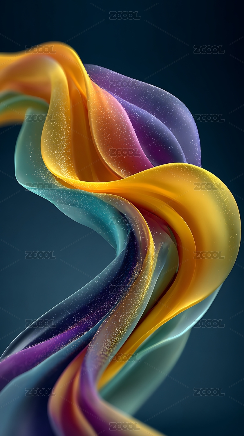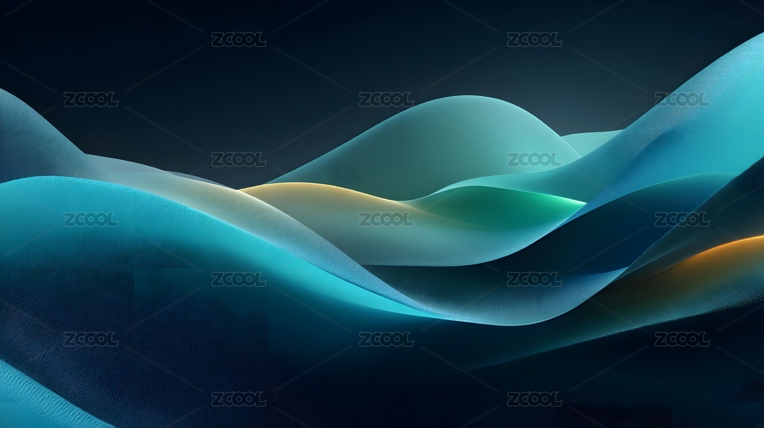抽象流动感曲线,柔和光影,蓝色与金色交织