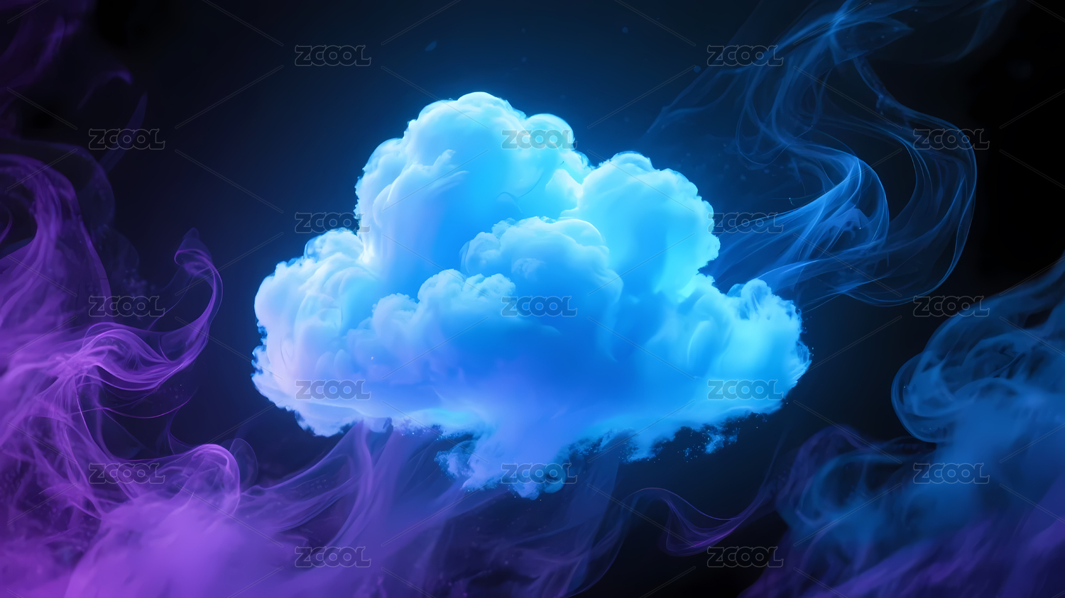 蓝紫色发光云朵环绕烟雾