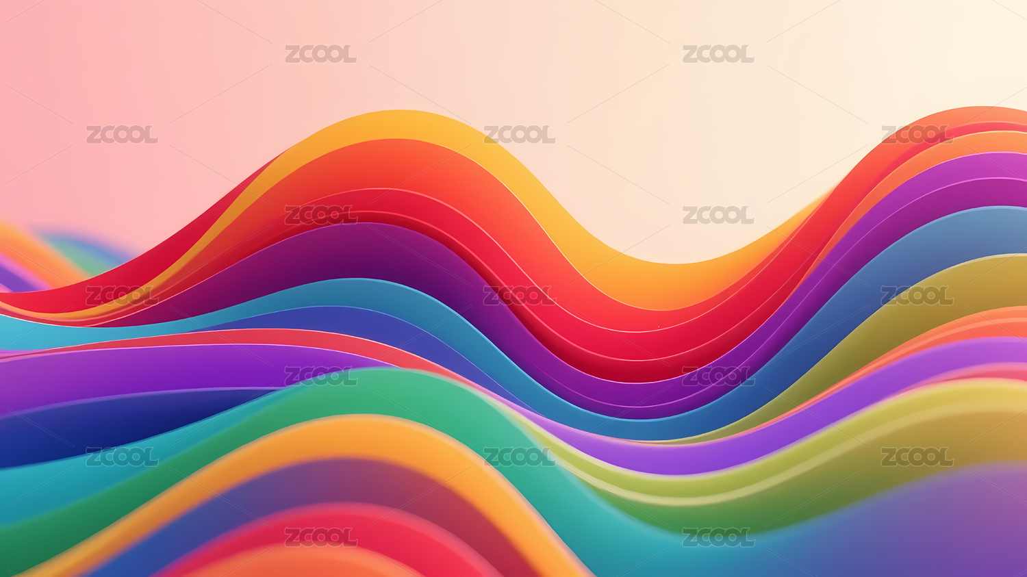 背景,波浪,橙色,粉色,动态,柔和,曲线,绿色,彩色,浅蓝