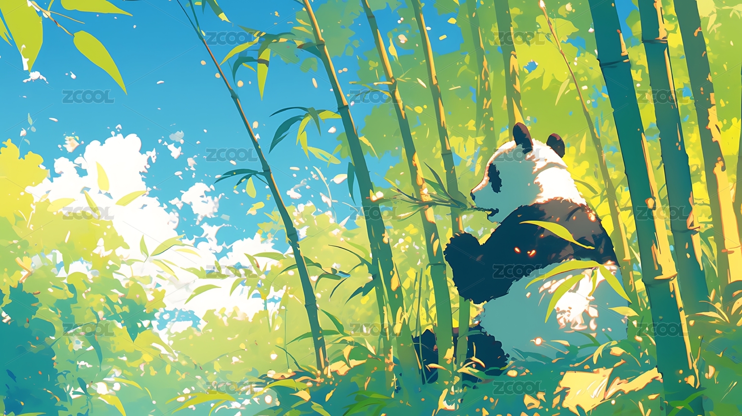 熊猫,大熊猫,插画,卡通,漫画,动漫,日漫,竹林,自然,绿色
