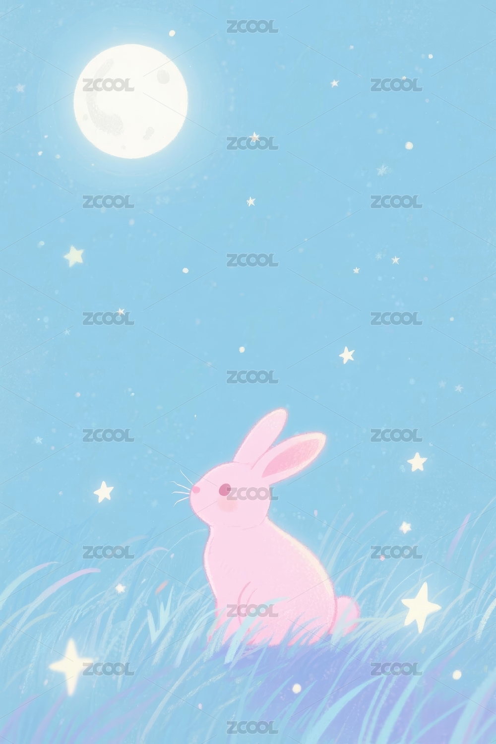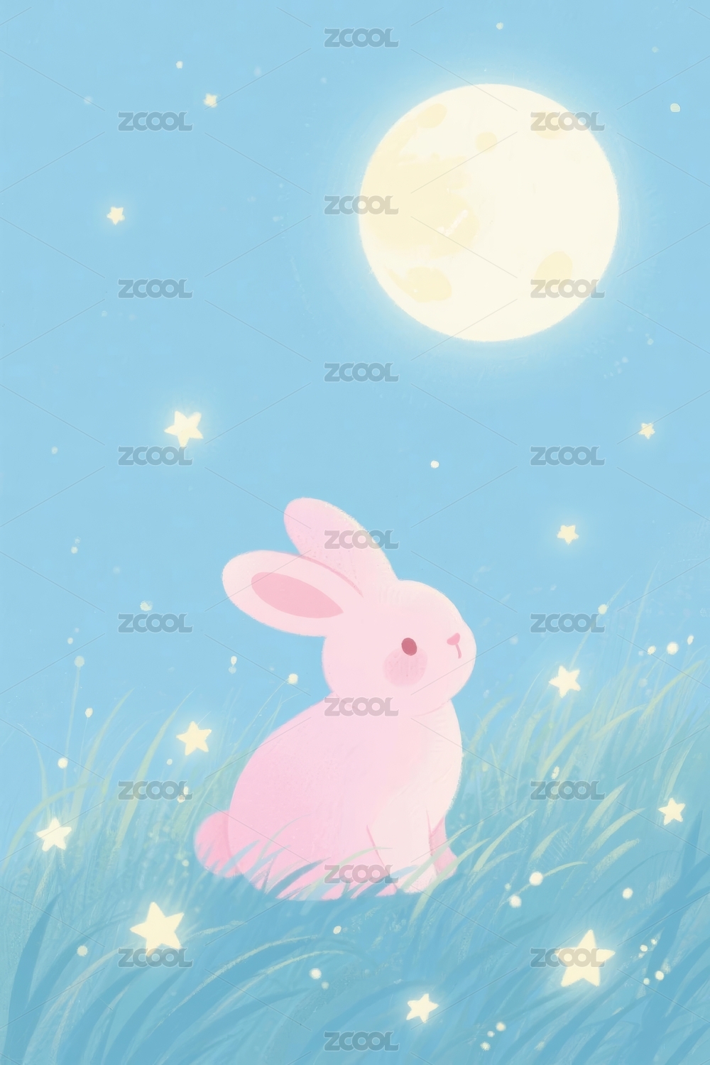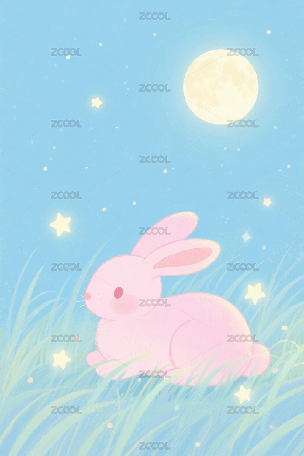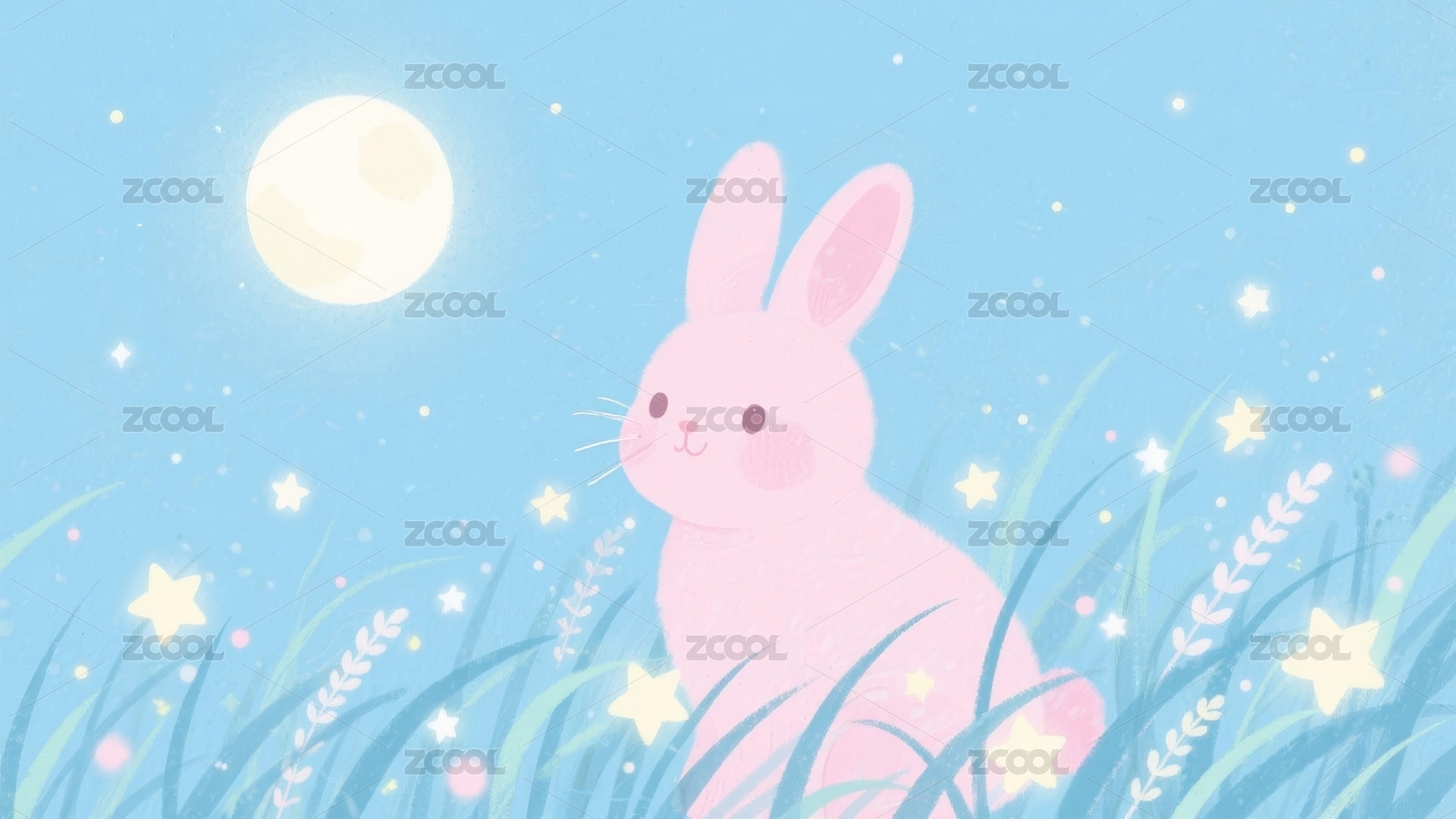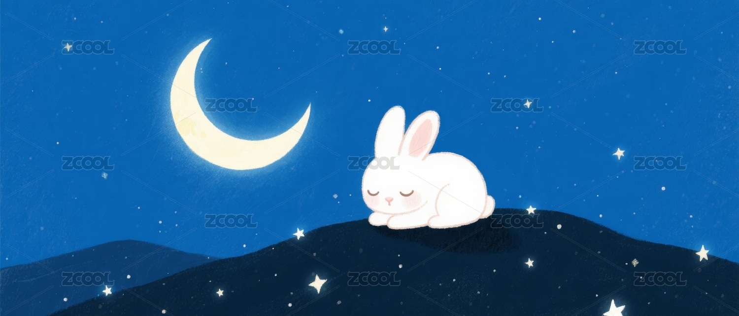 兔子治愈风格月夜场景展示