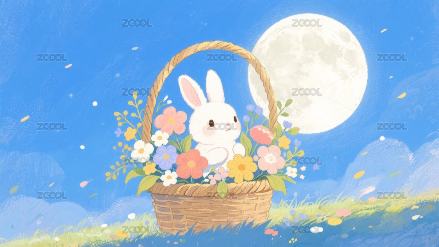 白兔篮子梦幻感月夜场景