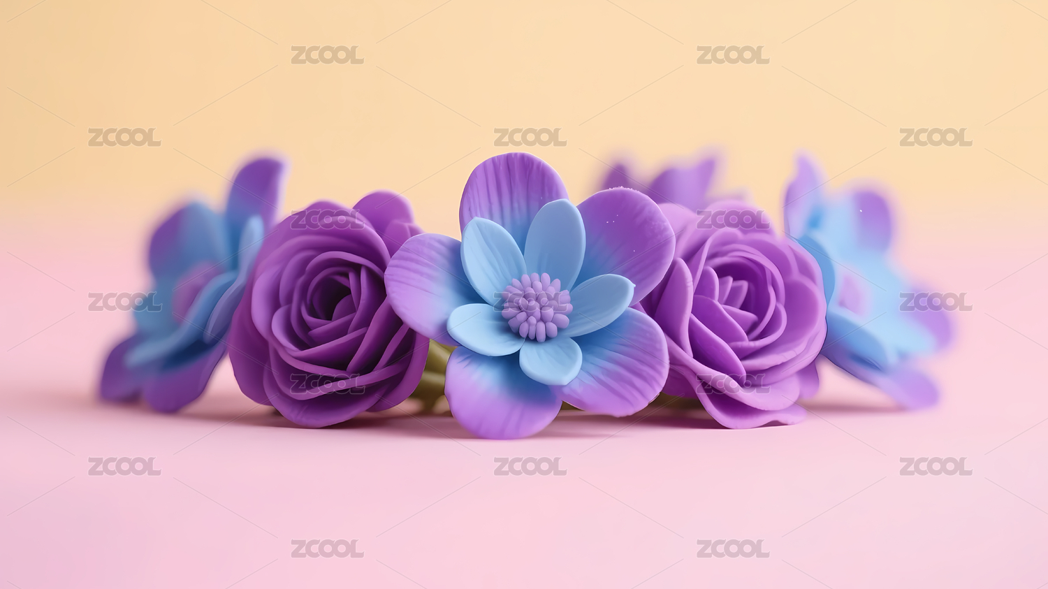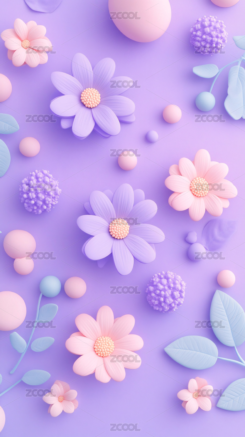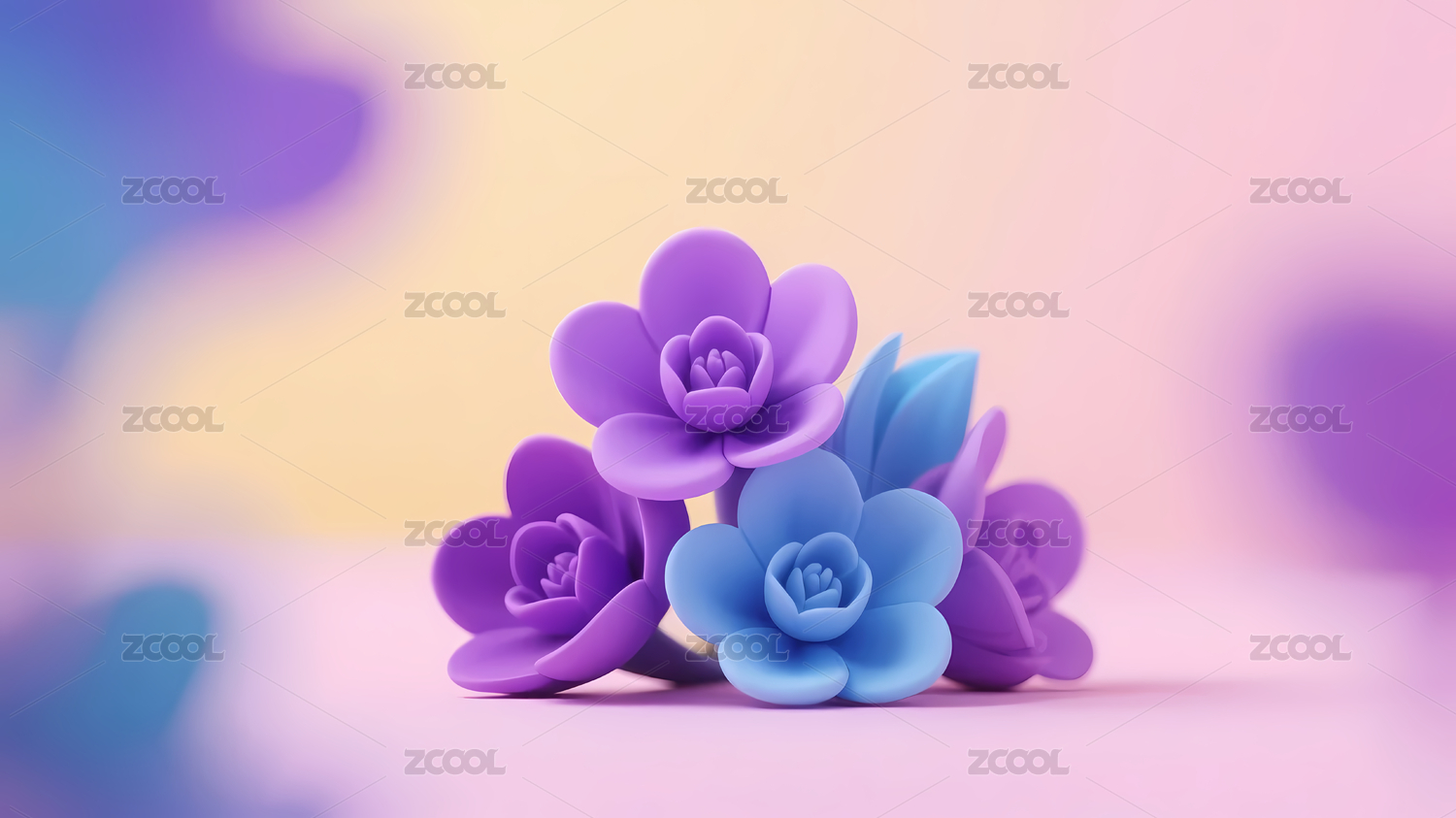 3D卡通紫色鲜花花卉背景