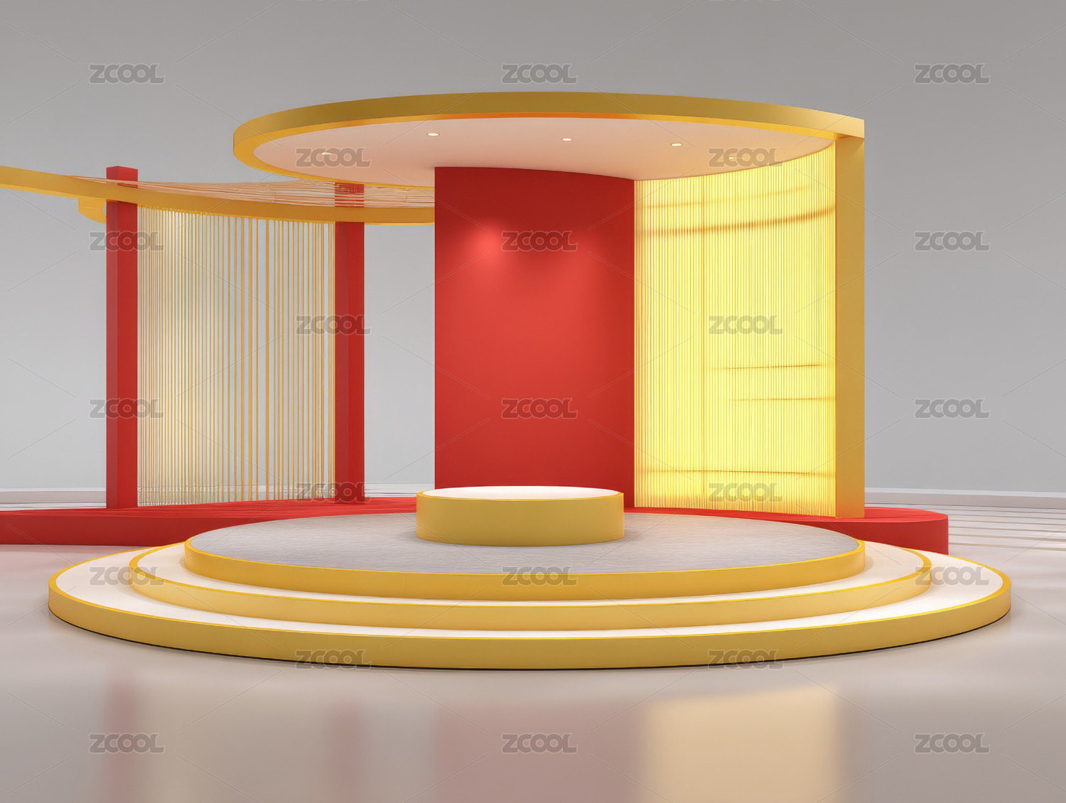 红色,舞台,简约,现代,装饰,室内,设计,金色,背景,植物