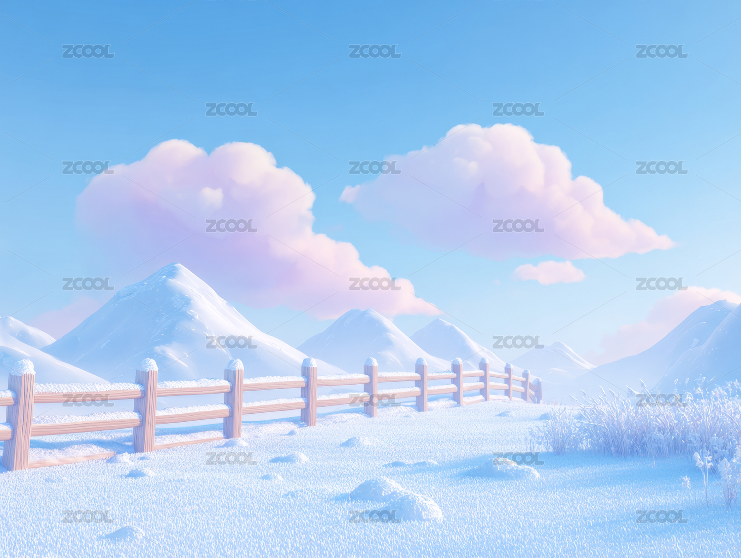 雪地,围栏,蓝天,白云,冬季,自然,户外,宁静