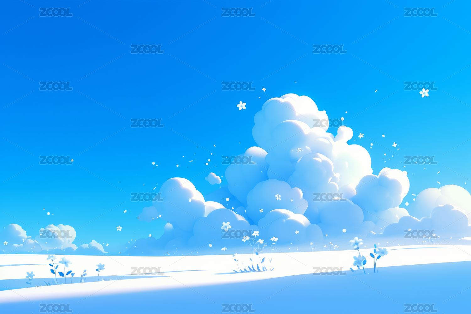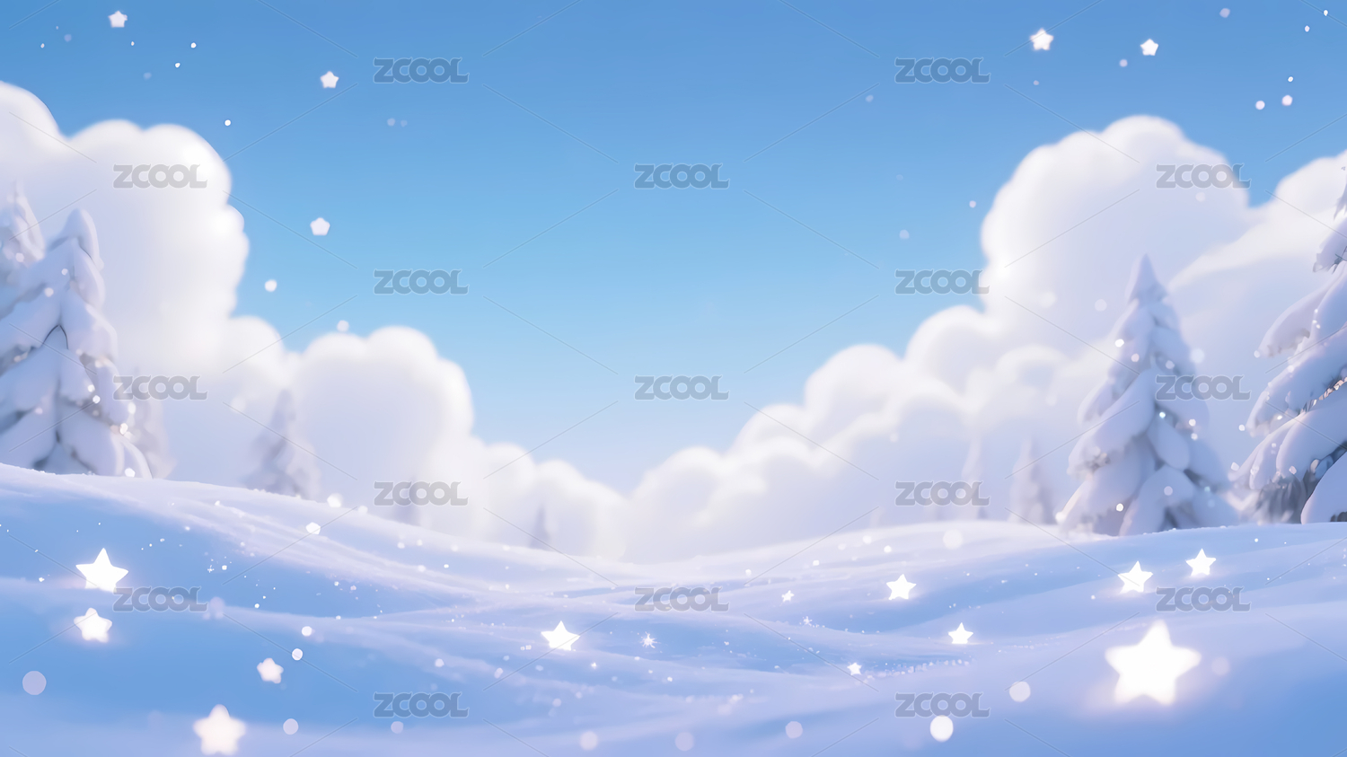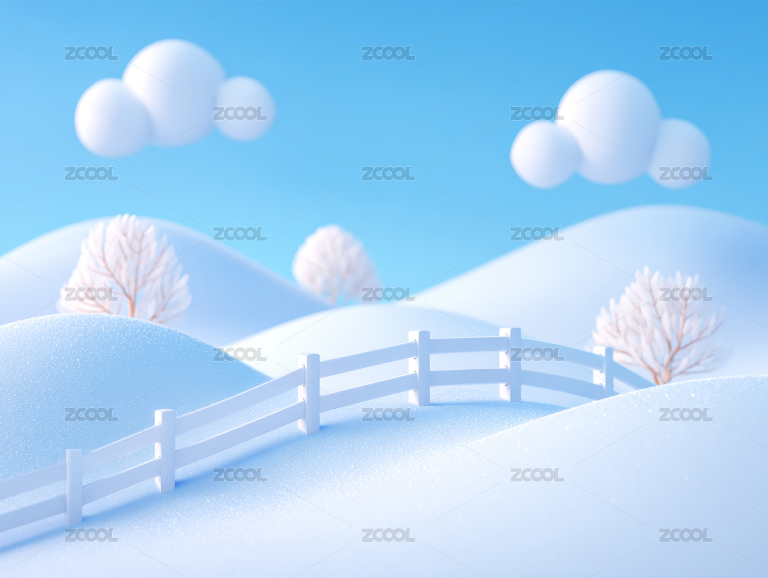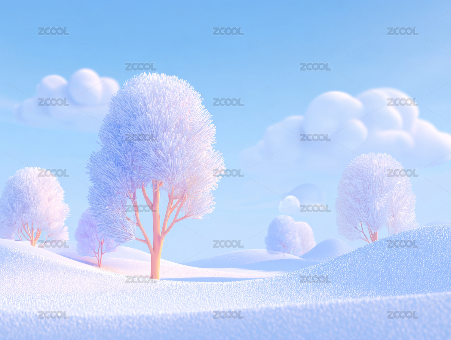 粉色蓝色树木与白色地形雪景三维卡通插画背