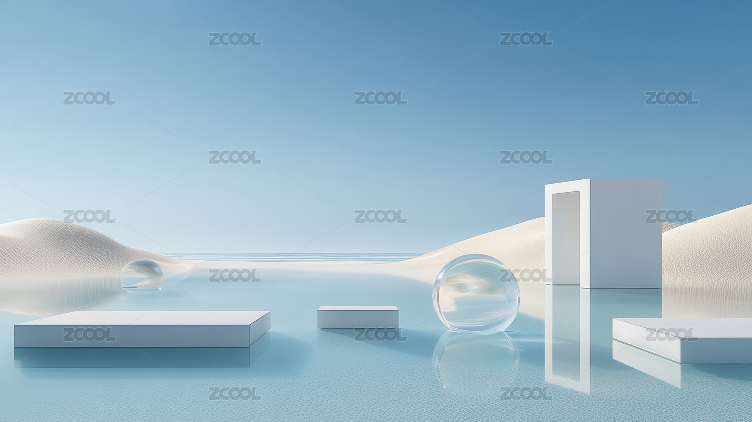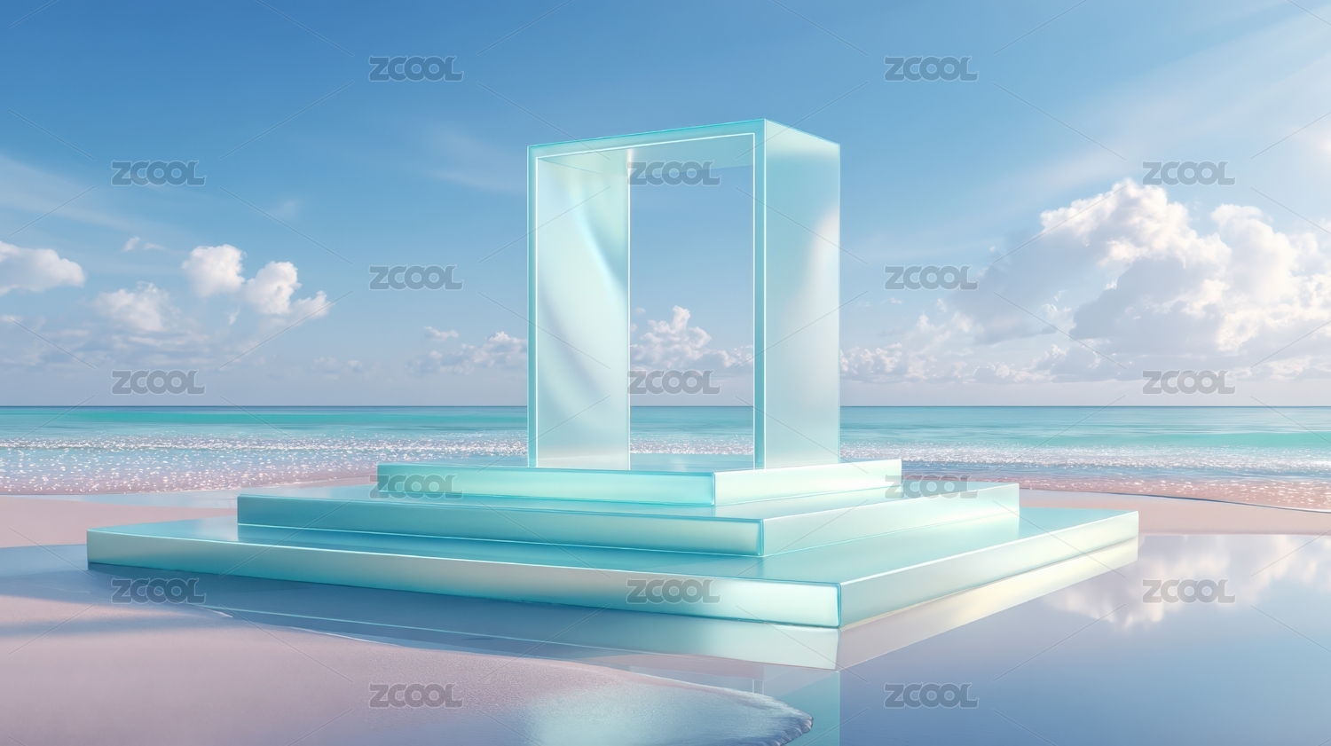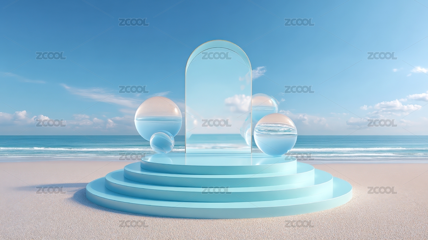 海滩,沙滩,蓝色,透明,泡沫,展示台,海水,现代,蓝天,圆形