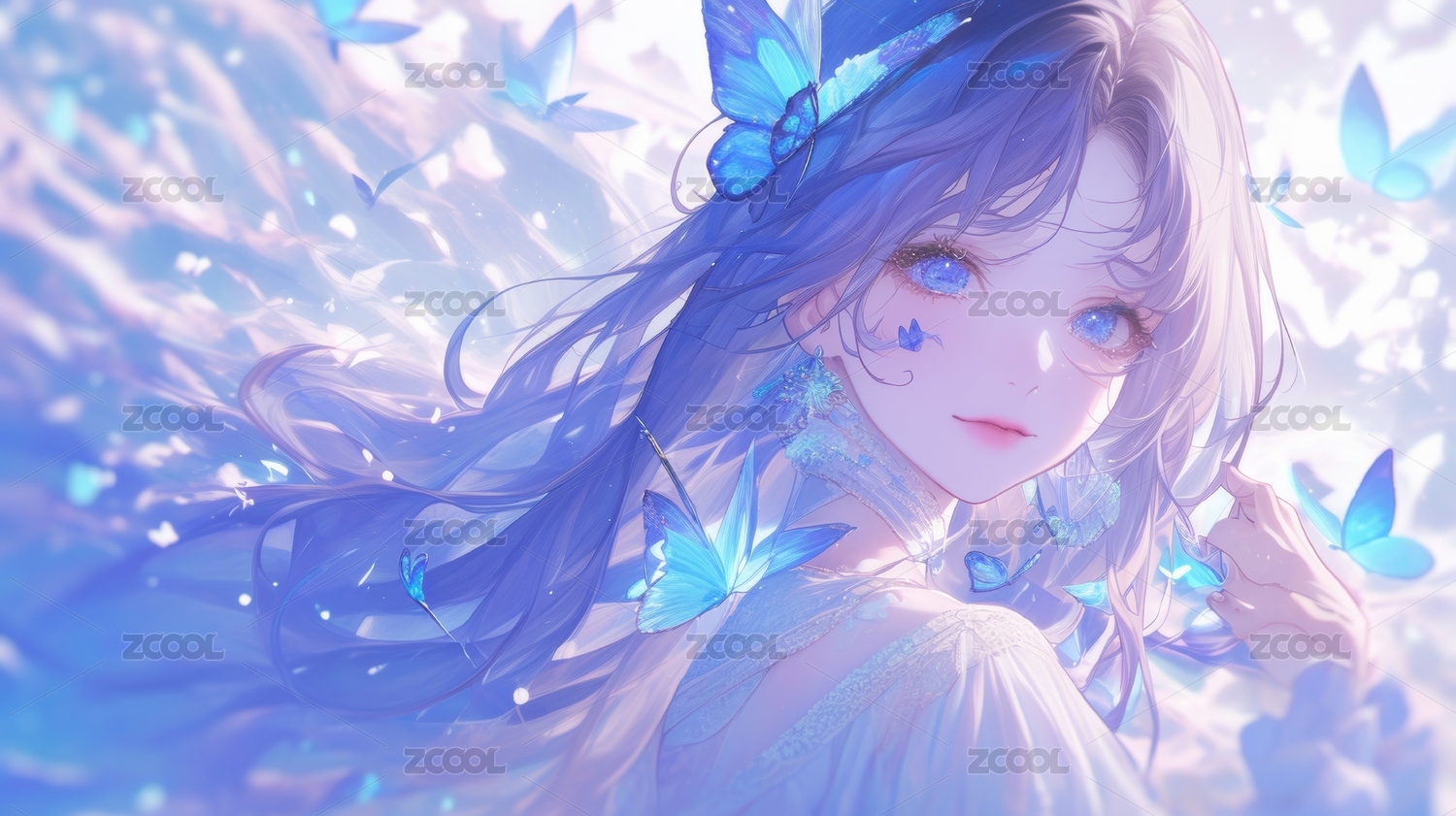 长发,艺术,背景,梦幻,色彩,插画,卡通,花朵,粉色,蝴蝶