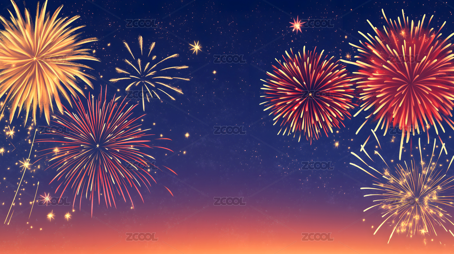 在夜空中燃烧的绚丽烟花的插画背景