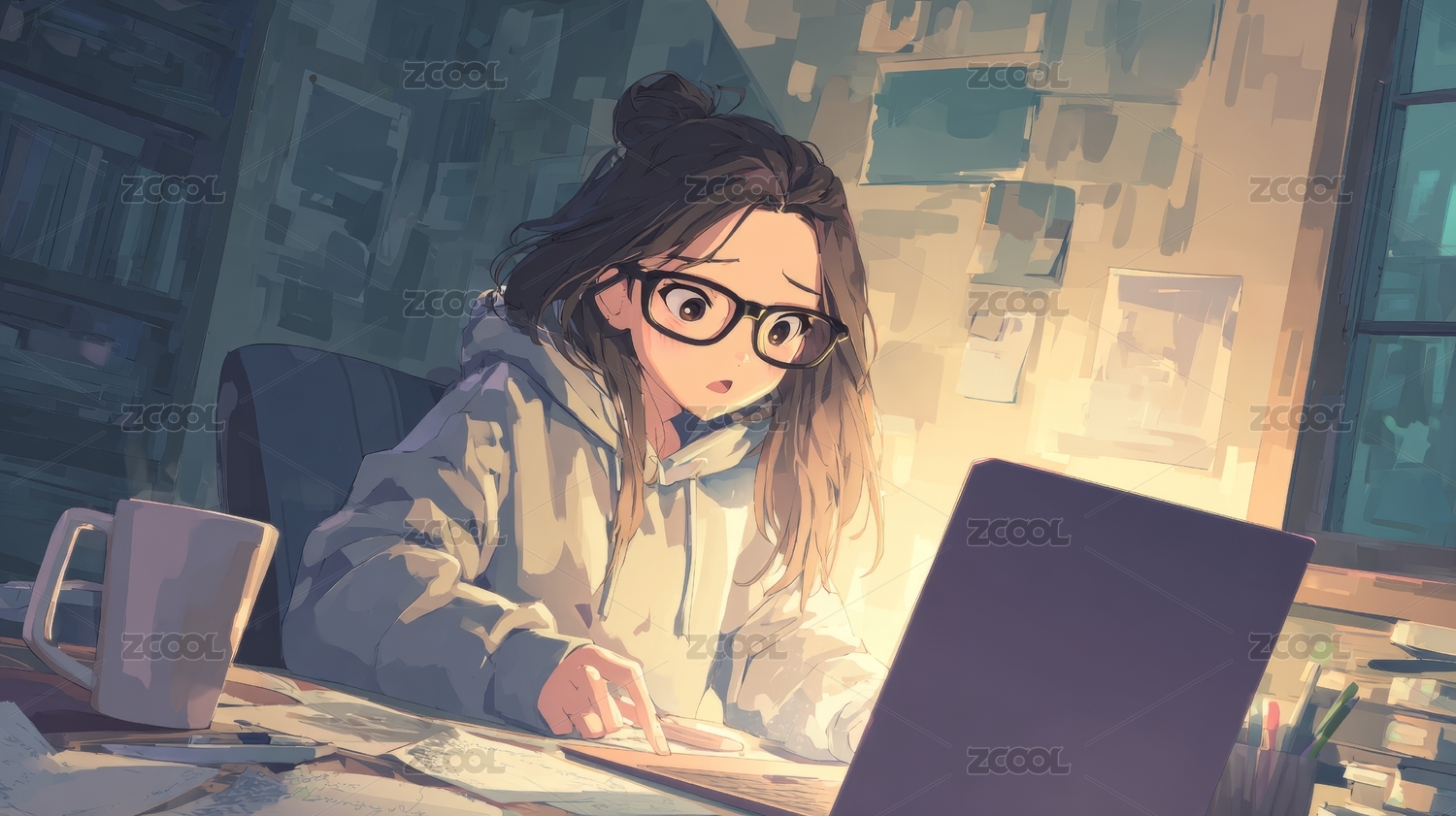女孩,室内,学习,插画,场景,青春,生活,教育,宣传,主题
