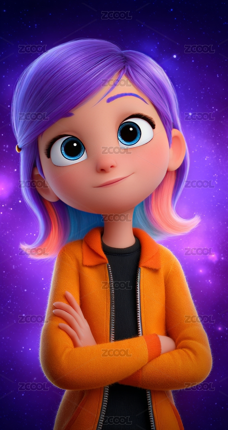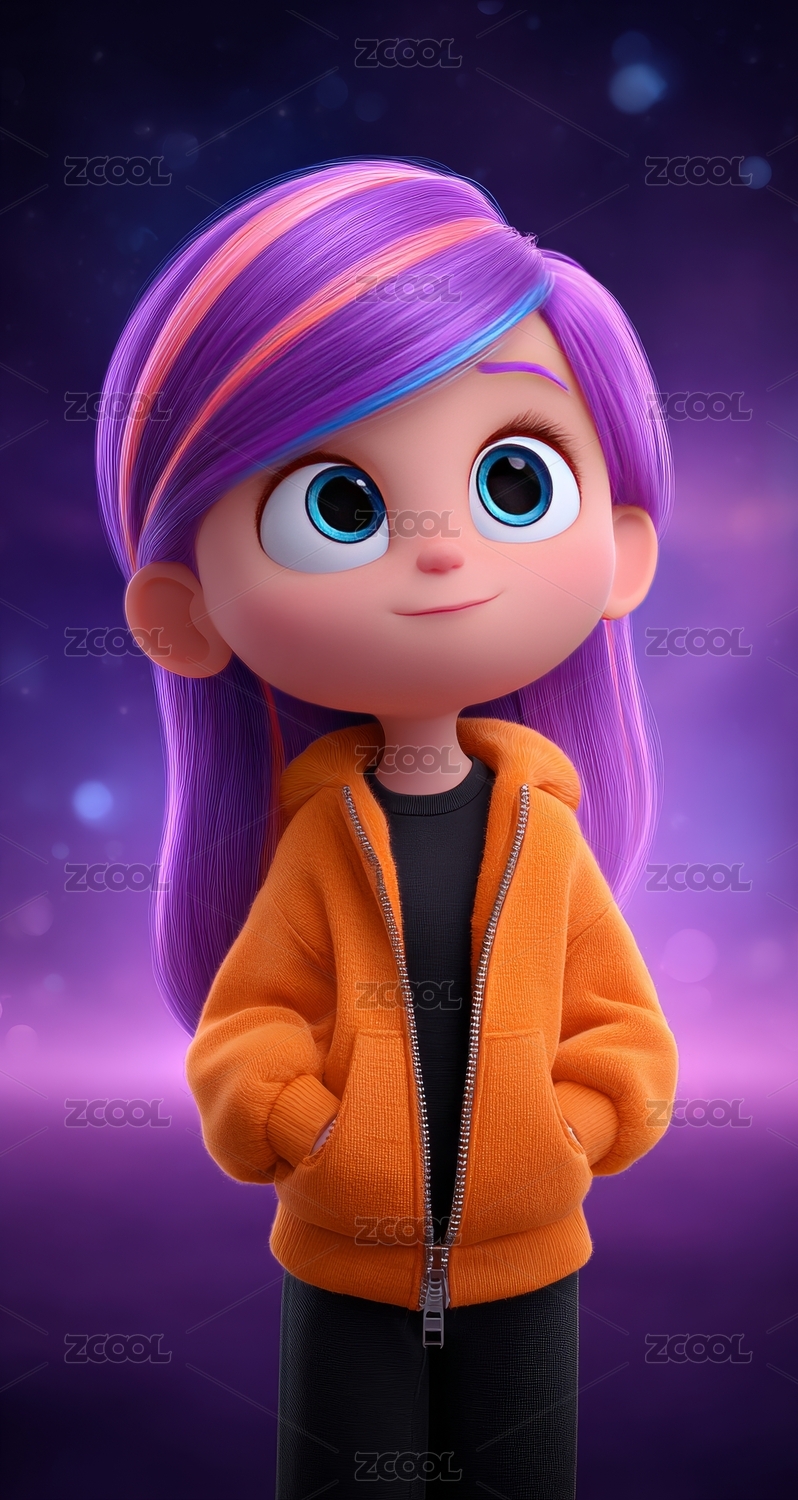 卡通女孩身着橙色外套