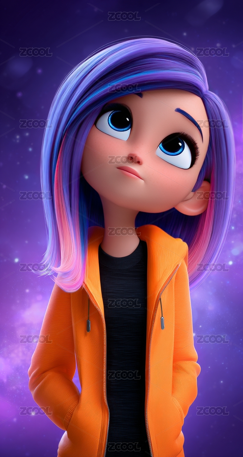 卡通少女身着橙色外套