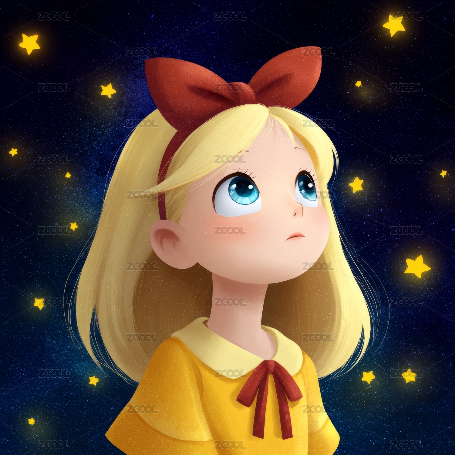 抬头望星女孩