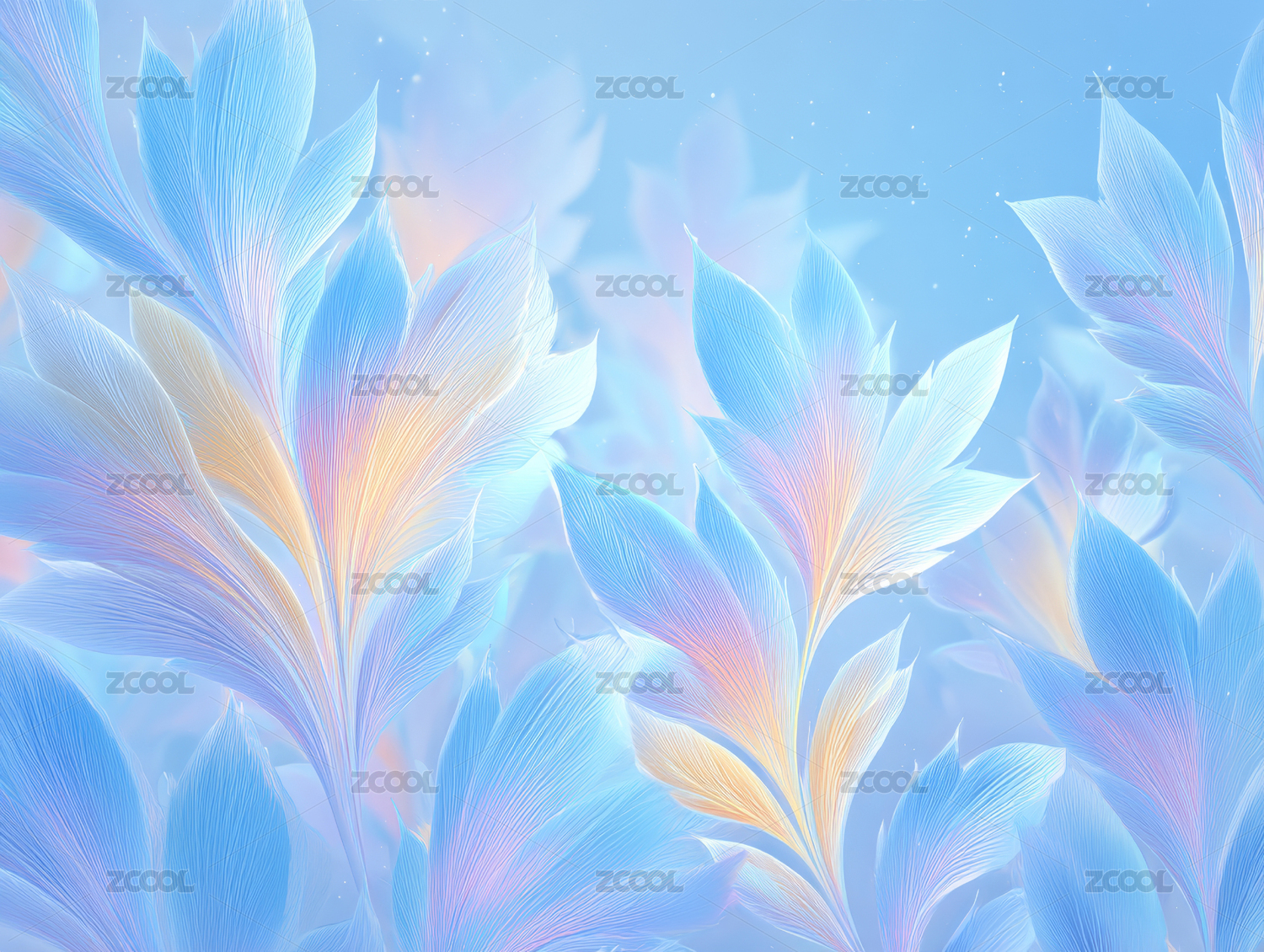 数码水彩蓝绿色羽毛印花抽象图形海报背景